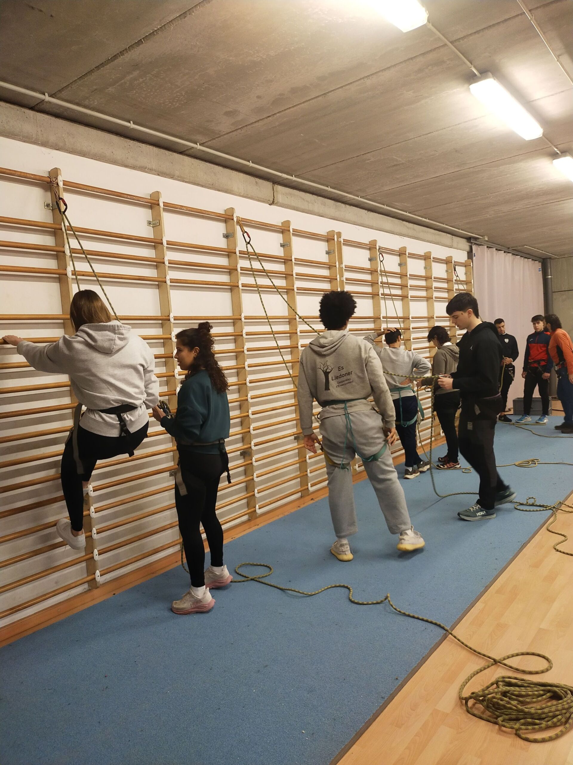 La primera, una segunda sesión de escalada de 5 horas al rocódromo RockArt de Palol de Revardit, en la cual se ha profundizado en el aprendizaje de las técnicas iniciadas en la primera sesión y se han introducido otros contenidos de escalada con cuerda. Además, el alumnado también se ha iniciado en la escalada en bloque o boulder, a partir del trabajo de contenidos como las técnicas de manos, brazos y pies para la progresión en el bloques, la utilización de los varios tipos de presa o la dinamización de grupos en un rocódromo. Las dos sesiones de escalada han sido dirigidas por el profesor Jordi Gerones, técnico deportivo superior en especialidad de alta montaña.