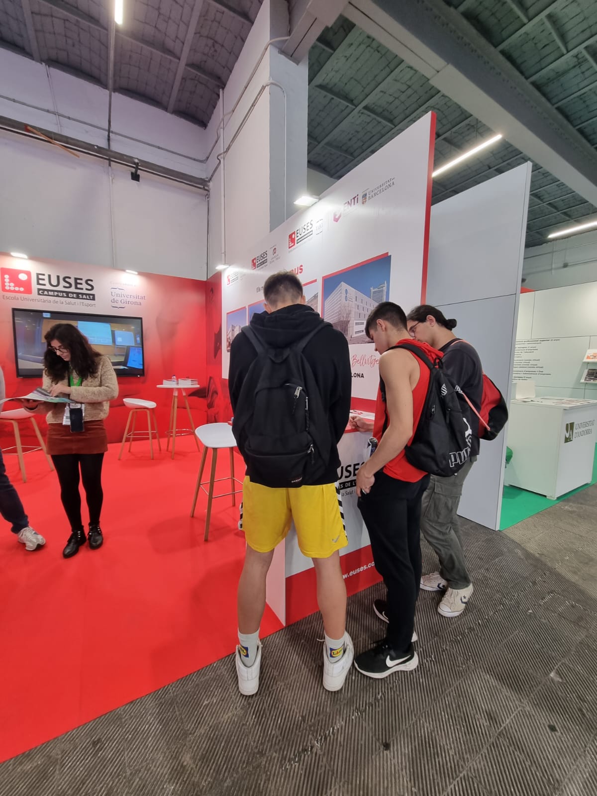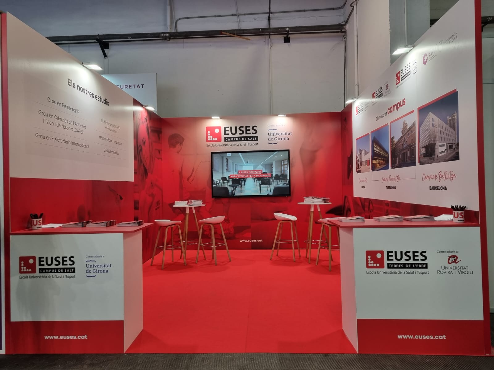 EUSES se encuentra ubicado en el estand 121 (pabellón 1, nivel 0, calle A). Allí los estudiantes podran encontrar toda la oferta universitària de los grados en Ciencias de la Actividad Física y el Deporte (Campus de Salt y de Terres de l’Ebre) y en Fisioterapia (Campus de Salt, Terres de l’Ebre y Bellvitge), dos formaciones especializadas y de calidad. También existe la opción de la Doble Titulación: CAFyD + Fisioterapia.