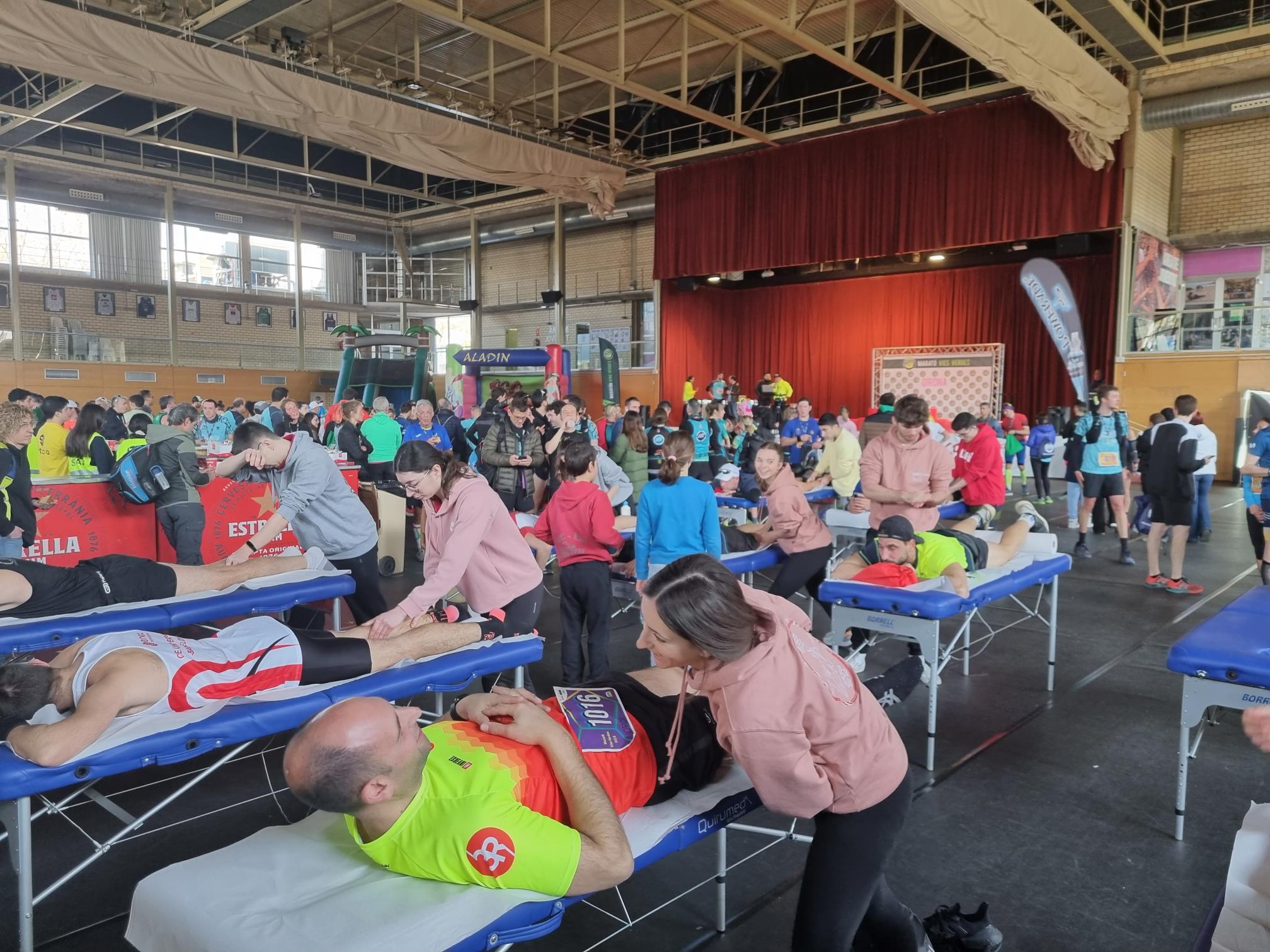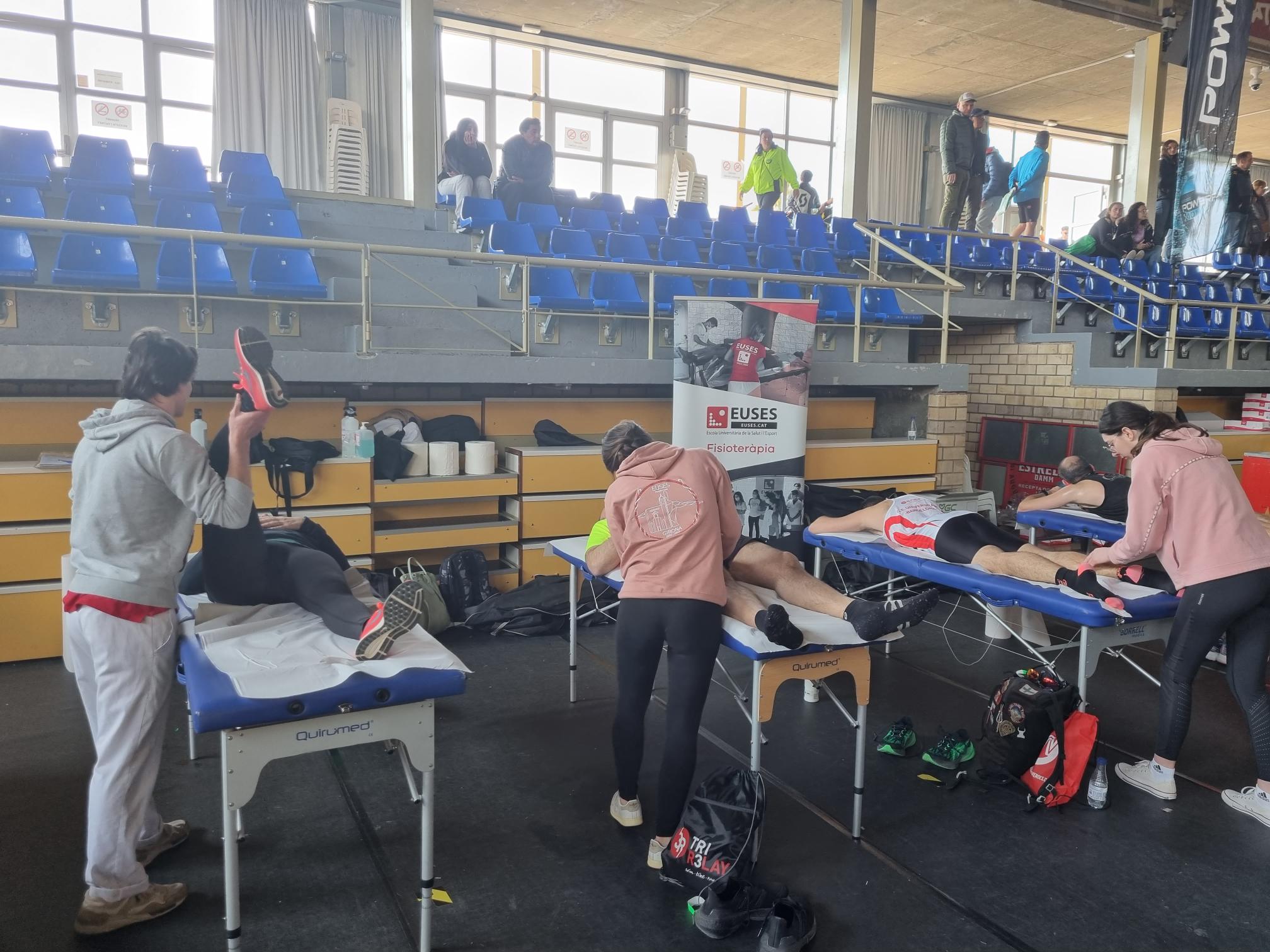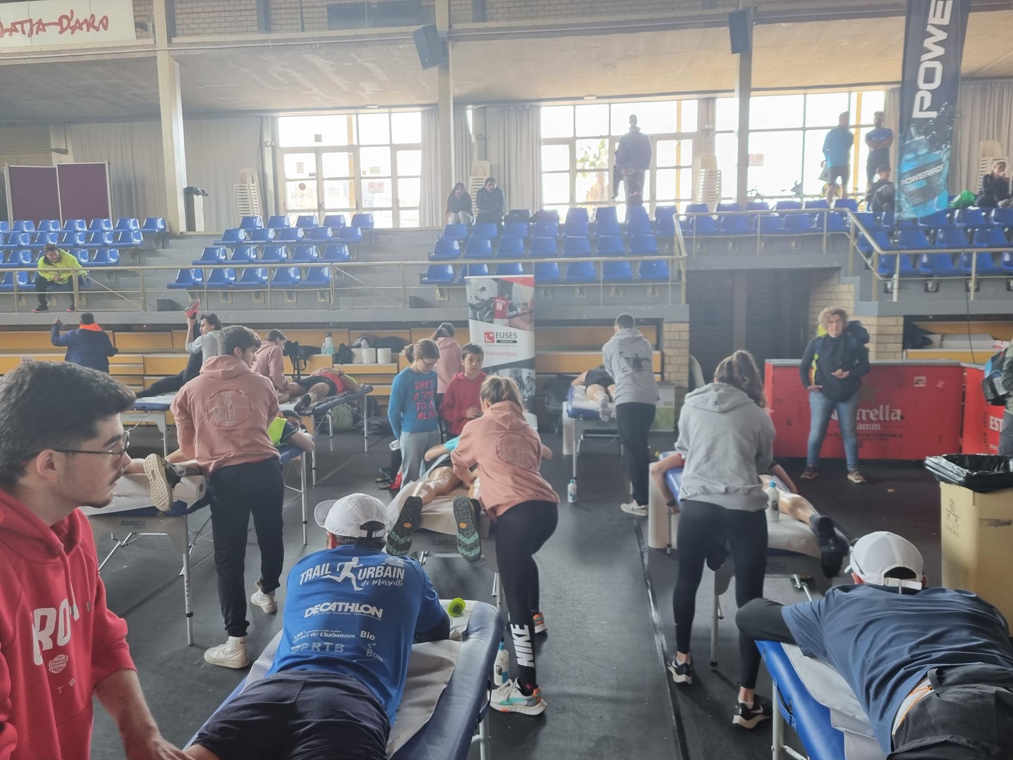 Bajo la supervisión del fisioterapeuta de EUSES Alumni David de la Barrera, una decena de alumnos del Grado en Fisioterapia (Nina Plenet, Maria Delgado, Lea Ferrand, Hippolyte Soucaze, Artur Calleja, Martí Fuster, Romeo Branswyk, Amadine Andrien, Abel Rossell i Guillem Pijoán) han recuperado este domingo a los participantes del Maratón de las Vías Verdes, una prueba que ha discurrido por antiguos trazados ferroviarios que han sido habilitados en caminos y que ha tenido cuatro puntos de salida y de kilometraje (42 km desde Girona; 30 km saliendo desde Cassà; 21 km si se iniciaba la carrera desde Llagostera y 10 km si se hacía desde Santa Cristina d’Aro) y una llegada, situada en Playa de Aro. Los estudiantes de EUSES han realizado masajes y estiramientos a los participantes que se acercaron a la zona habilitada para la recuperación.