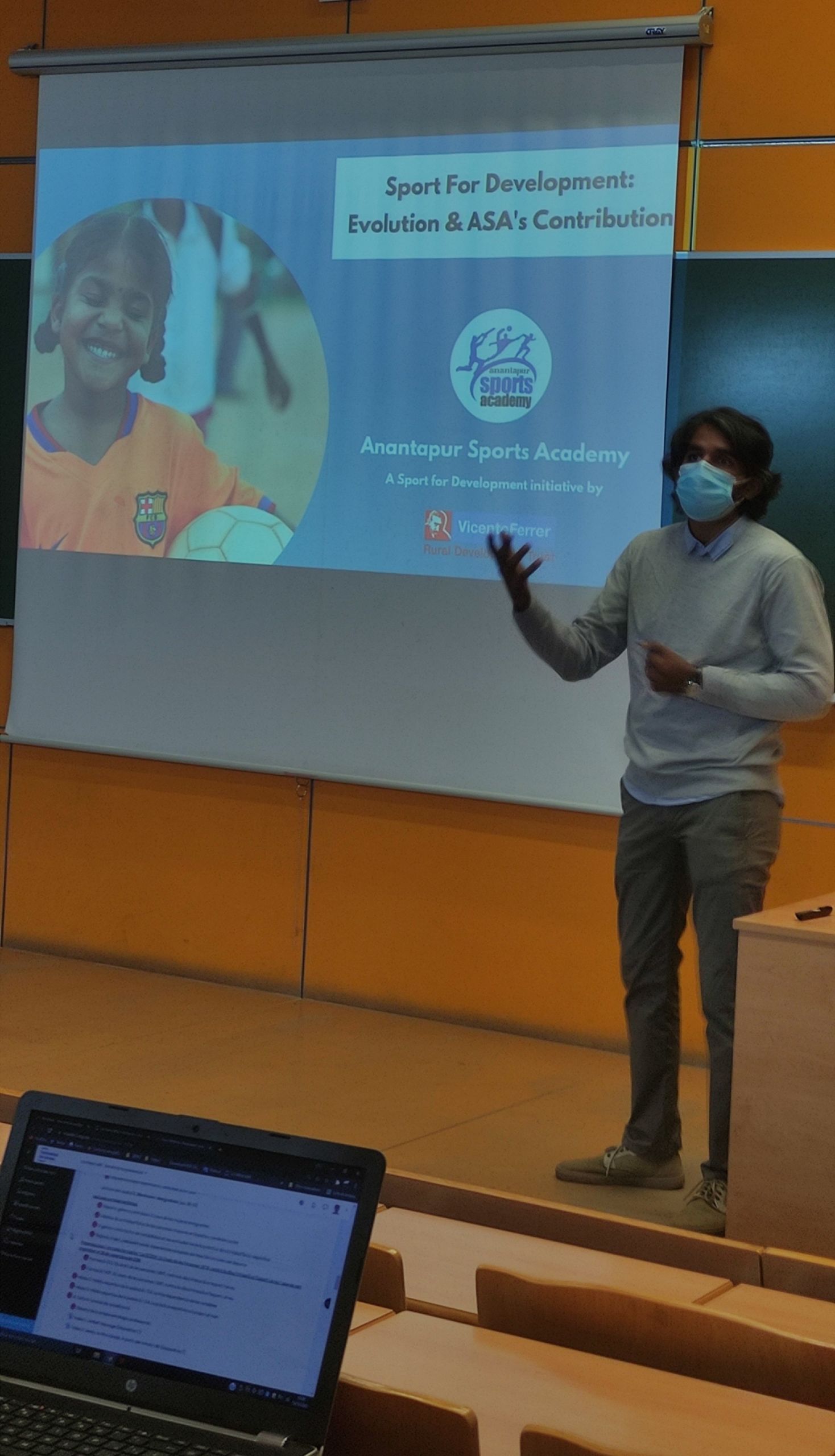 Este lunes 13 de diciembre, en el marco de la asignatura de Historia y fundamentos socio-culturales de la Actividad Física y el Deporte de 1º curso de CAFEyD que imparten los profesores Graham Sinclair y Adrià Martín, se ha impartido la masterclass sobre Deporte para el desarrollo con un caso práctico: el Anantapur Sports Academy de la Fundación Vicente Ferrer en la India.