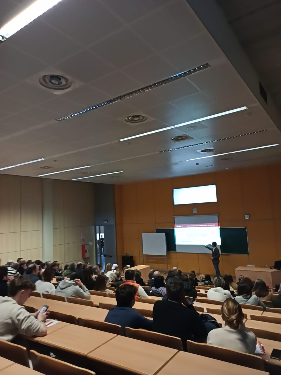 También se han realizado partes más informativas, que se han concentrado en el Aula Magna y en la Aula 8. Allí, los asistentes han podido visionar el video con las explicaciones del Dr. Gerard Muñoz (director de Physiotherapy Barcelona y profesor del Campus de Salt) sobre todos los aspectos académicos (plan de estudios, convenios, practicas…), mientras que los representantes de EUSES Pau Vila, Estefania Plans y Albert Deulofeu se han encargado de exponer la parte más administrativa y logística (proceso de matriculación, alojamiento, prácticas…). También han colaborado en la jornada de puertas abiertas el director de Fisioterapia del Campus de Salt, Ernest Esteve; los profesores Quim Llorella; la secretaria de coordinación Raquel Valldosera y la secretaria académica Teresa Fernández.