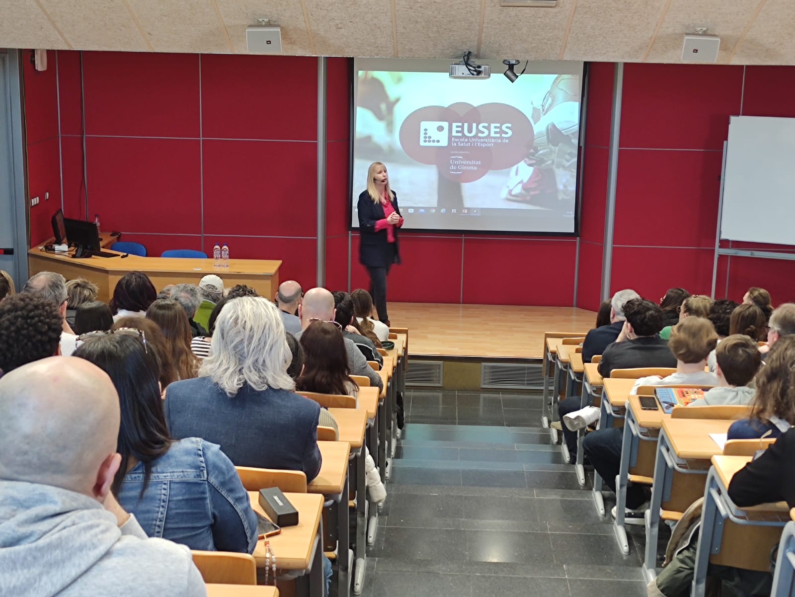También se han realizado partes más informativas, que se han concentrado en el Aula Magna (dos sesiones) y en las Aulas 7 y 8. Allí, los asistentes han podido visionar el video con las explicaciones del Dr. Gerard Muñoz (director de Physiotherapy Barcelona y profesor del Campus de Salt) sobre todos los aspectos académicos (plan de estudios, convenios, practicas…), mientras que los representantes de EUSES Sarah Vicente y Pau Vila se han encargado de exponer la parte más administrativa y logística (proceso de matriculación, alojamiento, prácticas…). También han colaborado en la jornada de puertas abiertas el director de Fisioterapia del Campus de Salt, Ernest Esteve; los profesores Quim Llorella y Estefania Plans; la secretaria de coordinación Raquel Valldosera y los miembros de Personal de Administración y Servicios Teresa Fernàndez i Albert Deulofeu.