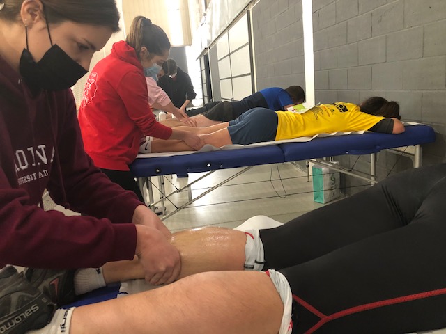 Bajo la supervisión de la fisioterapeuta de EUSES Alumni Marta Roura, los estudiantes del Grado en Fisioterapia Célia Benmouffok, Héloise Charpentier, Thomas Darboux, Jerémi Galonnier, Thibaud Marco y Laure Deveugle pusieron su grano de arena en la cuarta edición de la carrera solidaria Duchenne-Sonrisas Valientes que tuvo lugar en Salt. Los participantes pudieron escoger entre tres carreras por la zona de las Deveses de Salt, una de 1,5 kilómetros (inclusiva), una de 5 kilómetros (caminata) y una de 9 kilómetros (carrera). Al final de la prueba, los alumnos de EUSES realizaron técnicas de recuperación muscular (masajes y estiramientos) a los participantes que así lo desearon. El dinero ingresado por las inscripciones se donó íntegramente al hospital de Sant Joan de Deu para el estudio de la enfermedad Distrofia Muscular de Duchenne.