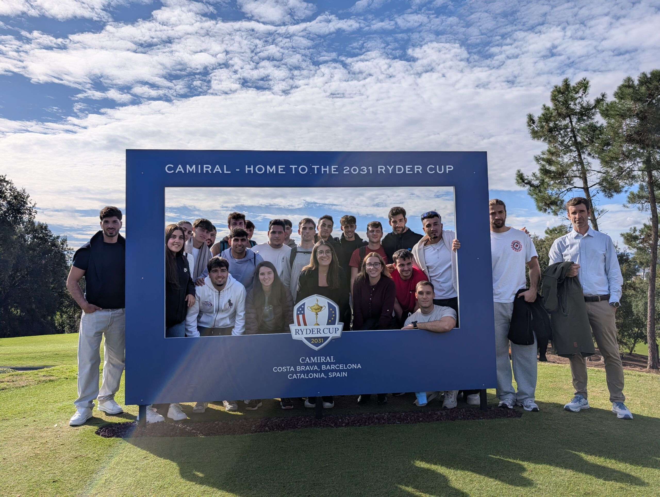 En el marco de la asignatura de Emprendimiento en la Actividad Física y el Deporte que imparte el profesor Jordi Jorba, los estudiantes de 4º curso del Grado en CAFyD han visitado el “Camiral A Quinta do Lago Resort«, en Caldes de Malavella, escenario que será sede en 2031 del principal acontecimiento de golf a nivel mundial como es la Ryder Cup. La visita de los alumnos de EUSES se ha dividido en cinco partes. En la primera, Flavio Papa, director general del área de golf, ha explicado la línea de negocio del golf y el impacto de la próxima edición de Ryder Cup. Posteriormente, Sònia Puigdollers, directora de recursos humanos, ha mostrado el organigrama general y ha hecho una pincelada sobre la organización de las personas del resort, así como las ventajas que tienen para trabajar en dicha instalación. Seguidamente, los 24 alumnos que han formado la expedición de EUSES se han desplazado hasta la escuela de golf, donde Enric López ha explicado los diferentes servicios que ellos ofrecen, así como la tecnología de la cual se dispone para perfeccionar el entrenamiento y prevenir lesiones. Después ha sido el turno de Jepi Llorens, responsable del área de actividades, quien ha mostrado la parte de Wellness y Fitness y ha expuesto el catálogo de servicios que ofrece desde su departamento. Por último, Ferran, Palau, director de operaciones de golf, ha liderado una visita guiada por el club, recreando todos los pasos que los clientes que quieren jugar a golf en un día normal en el club.