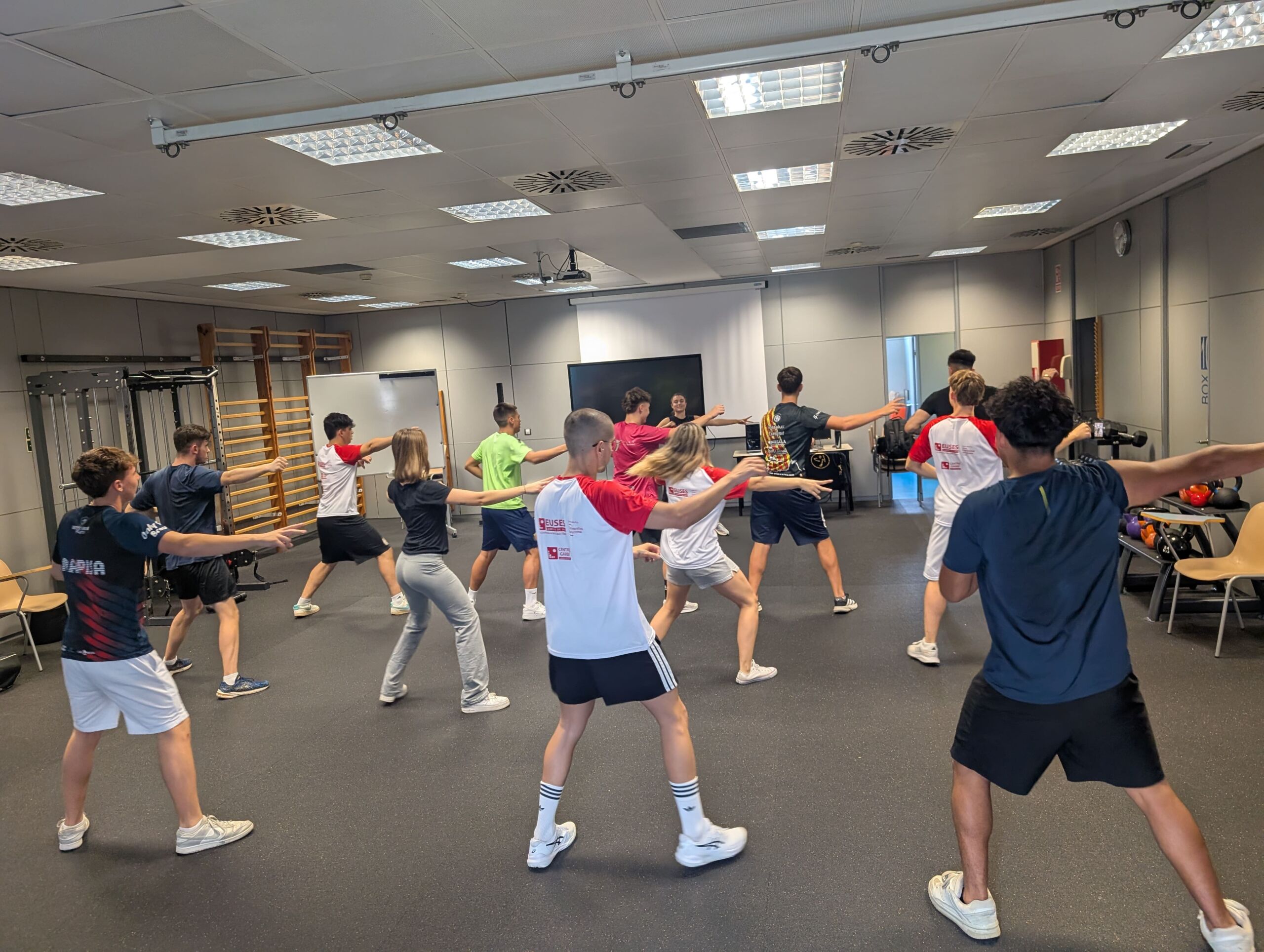 Los alumnos de 1º curso del Ciclo Formativo de Grado Superior en Acondicionamiento Físico han realizado una sesión con la técnica Estel Garcia donde se han realizado los pasos básicos de los diferentes estilos de bailes latinos como el merengue, la salsa, la bachata, la cumbia y el reggaetón. La actividad se ha enmarcado dentro del módulo de actividades básicas que imparte el profesor Marc Rafel. Con una perspectiva real como técnicos, los estudiantes han aprendido como crear y estructurar una sesión de Zumba, una lista de reproducción, control de la intensidad y aspectos de aplicación dentro de una clase de bailes latinos.