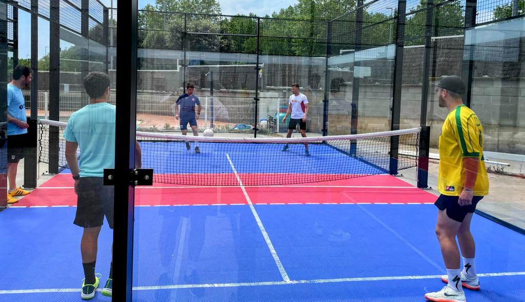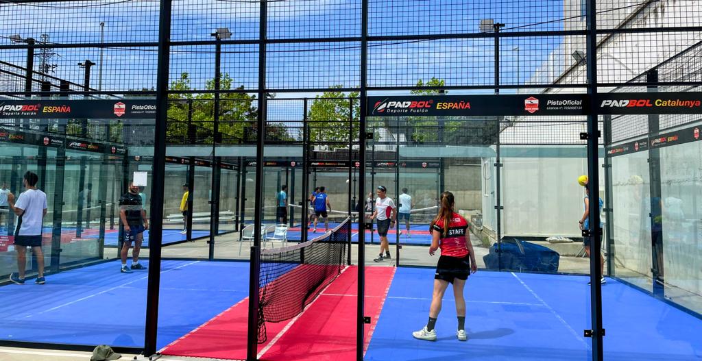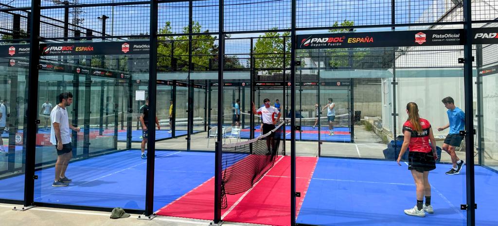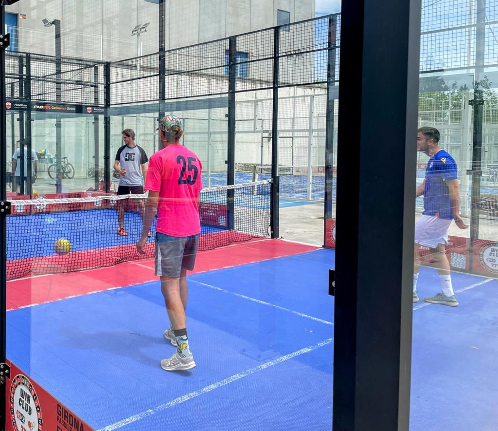Los estudiantes de 3. de CAFyD de la asignatura de fútbol practican el Padbol en el x3 Club Girona Pádel