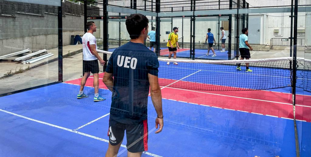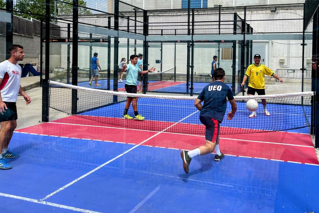 Los estudiantes de 3º curso del Grado en Ciencias de la Actividad Física y del Deporte han podido disfrutar este martes de una sesión de Padbol en las instalaciones del x3 Club Girona Padel, en Sant Gregori. La actividad se ha enmarcado en la asignatura de Deportes de Equipo II-Fútbol que imparte el profesor Jordi Grabulosa, y los estudiantes de EUSES han podido conocer las normas y el funcionamiento de este deporte de la mano de un grupo de jóvenes vinculados todos ellos con el fútbol gerundense (Albert Anglès, Marcos Arizmendi, Joaquim Culebras, Pau Garcia, Dídac Jerez, Lluís Micaló y Aitor Yeto) y que hace unos años tuvieron la idea de sacar adelante esta iniciativa. Los alumnos también han podido practicar este deporte después de recibir las explicaciones teóricas.