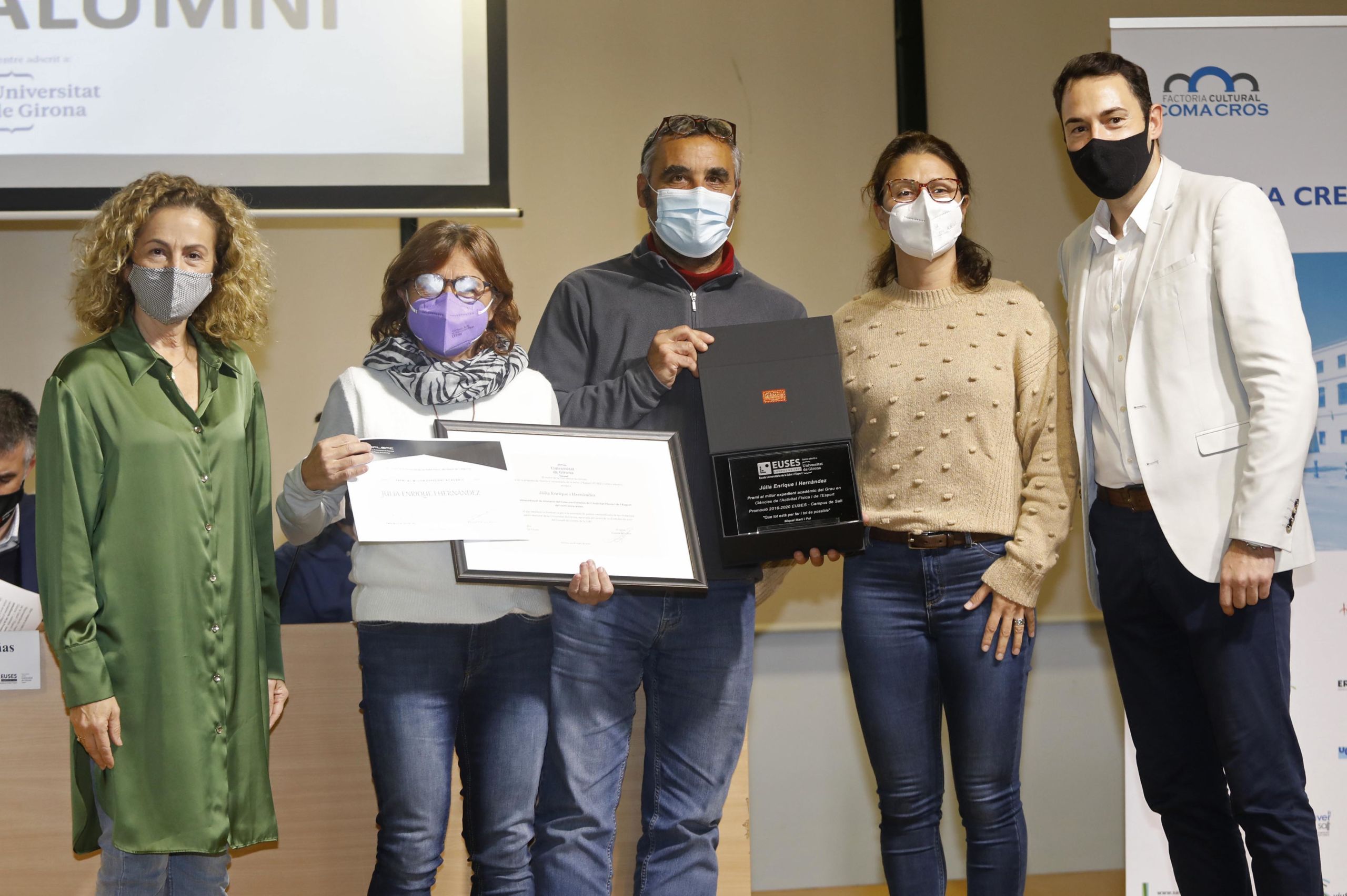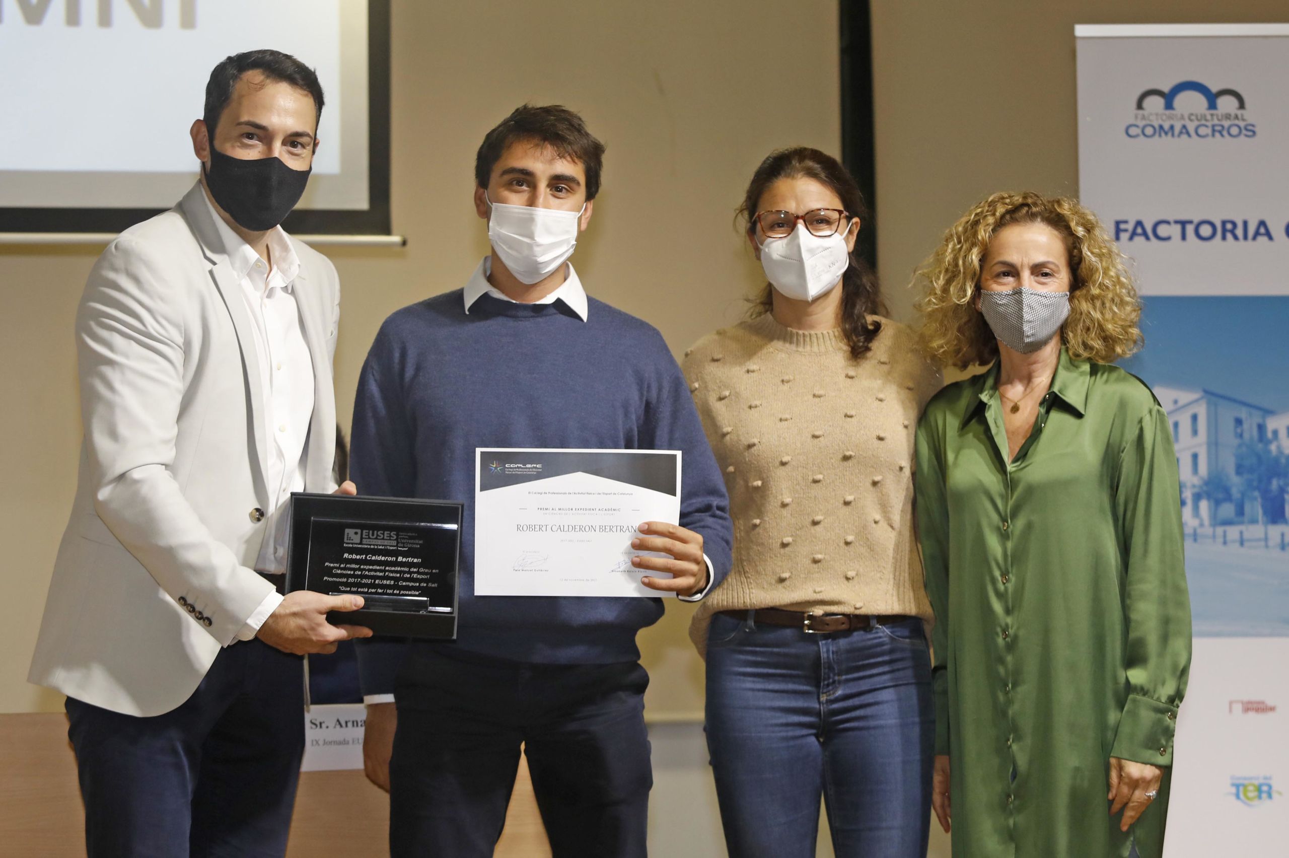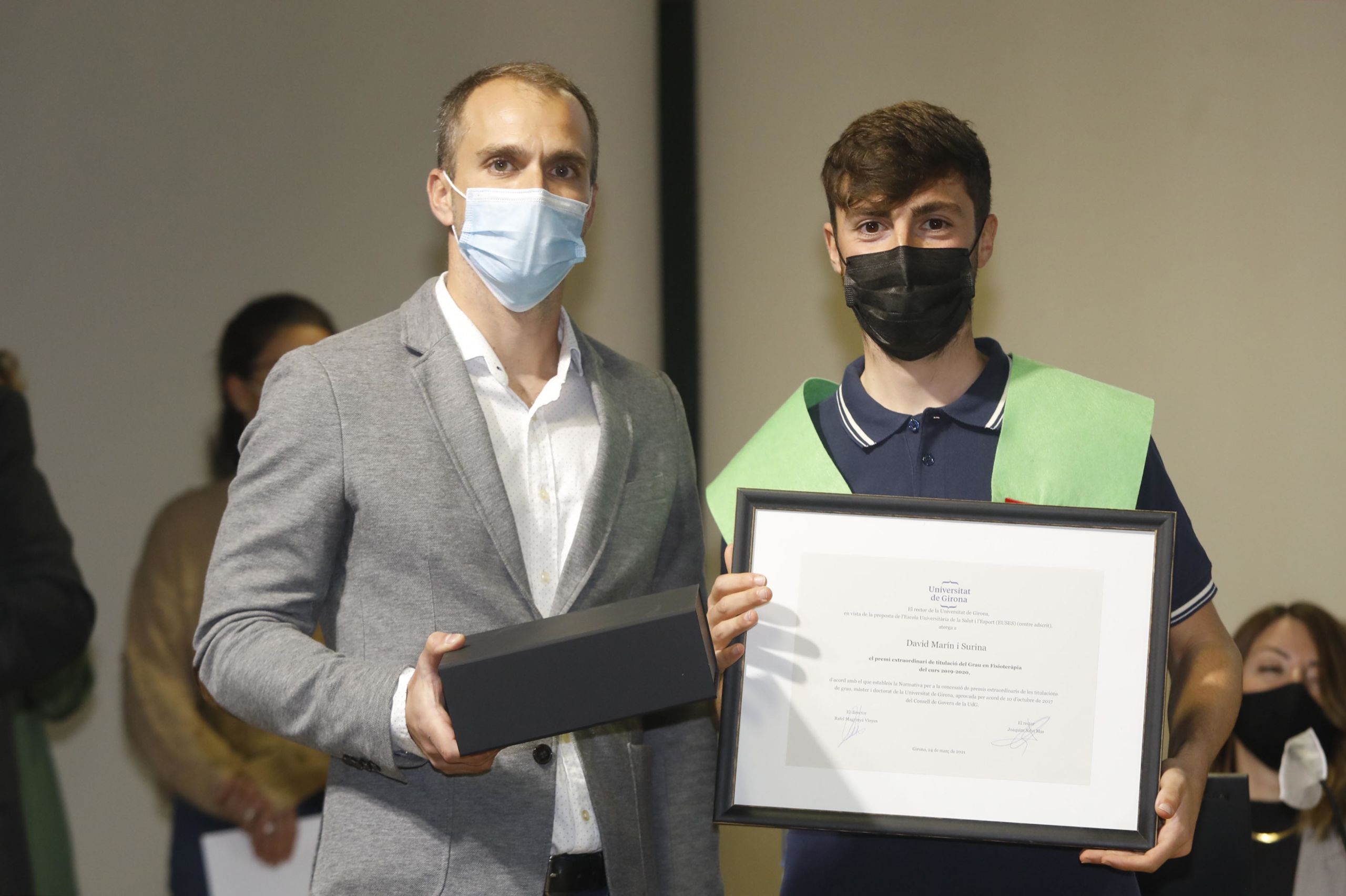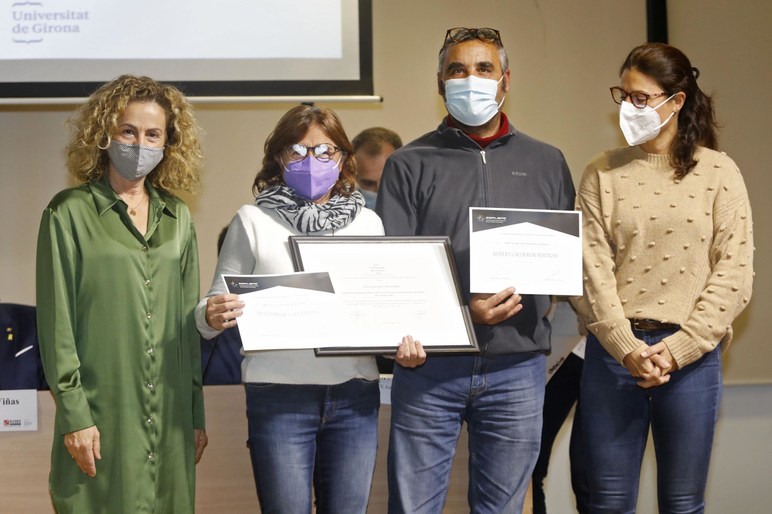 Durante la jornada, que ha sido presidida por el alcalde de Salt, Jordi Viñas; y el Vicerrector de Comunicación y Relaciones Exteriores de la UdG, José Antonio Donaire, se ha hecho entrega de los premios a los mejores expedientes de los Grados en CAFyD del 2020 (Júlia Enrique) y 2021 (Robert Calderón); de Fisioterapia 2020 (David Marí) y 2021 (Brion Théo) y de Physiotherapy 2020 (Lena Siqveland) y 2021 (Lucile Eline Gangloff). Estas dos últimas y Júlia Enrique no han podido asistir al acto, pero han mostrado su agradecimiento a través de un video. La entrega de estos premios extraodinarios ha ido a cargo de los directores de Grado, Adrià Martín y Ernest Esteve y de la representante del COPLEFC, Martí Valverde. La IX Jornada Anual Alumni, igual que el Acto de Graduación, se han emitido en directo por streaming.