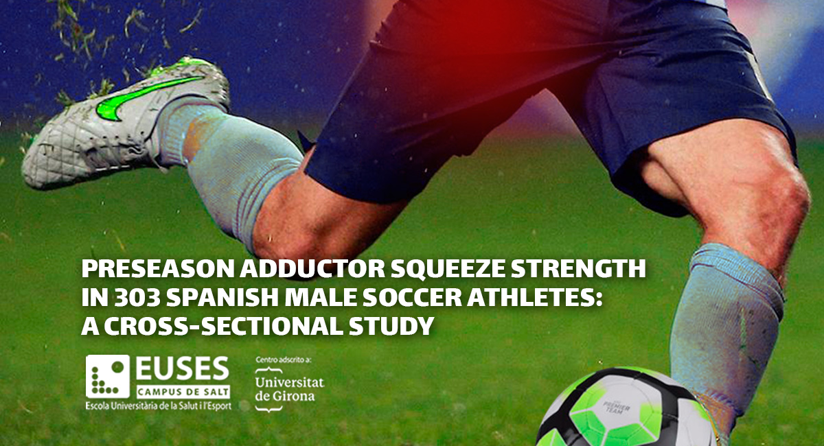 Los profesores de EUSES-UdG, la Universidad de la Salud y el Deporte, Ernest Esteve y Jordi Vicens han realizado un estudio transversal titulado: ‘Preseason Adductor Squeeze Strength in 303 Spanish Male Soccer Athletes: A Cross-sectional Study’. El propósito de este estudio fue investigar si los futbolistas con una lesión o dolor inguinal durante la temporada anterior tenían menos fuerza en la musculatura aductora de cadera en la pretemporada, en comparación con aquellos que no padecieron ninguna lesión o molestia. También, se investigó si las diferencias en la musculatura aductora de la cadera en la pretemporada, estaban relacionadas con el dolor inguinal y la duración de éste y también si estaban relacionadas con el dolor inguinal actual o por factores como la edad.