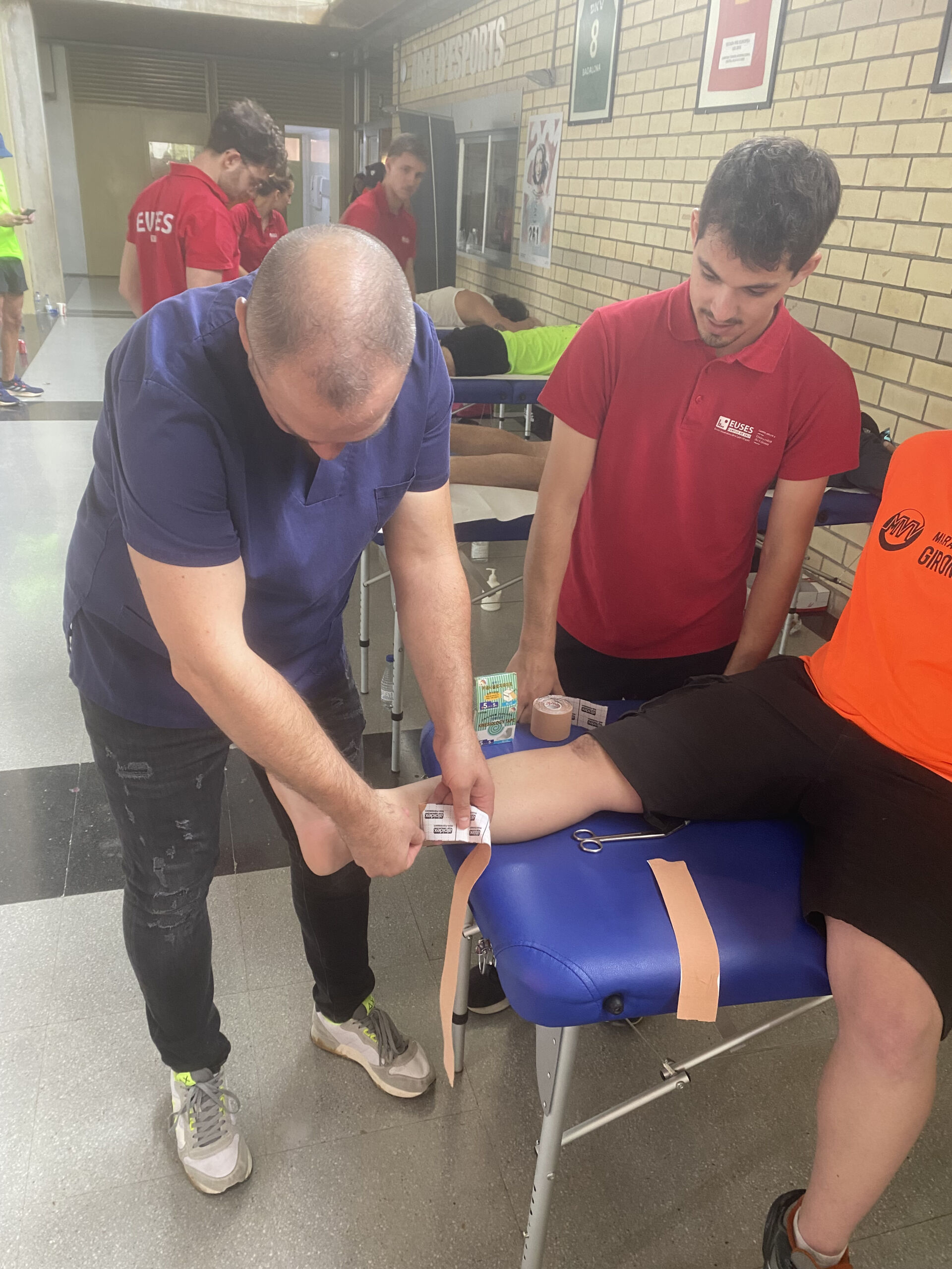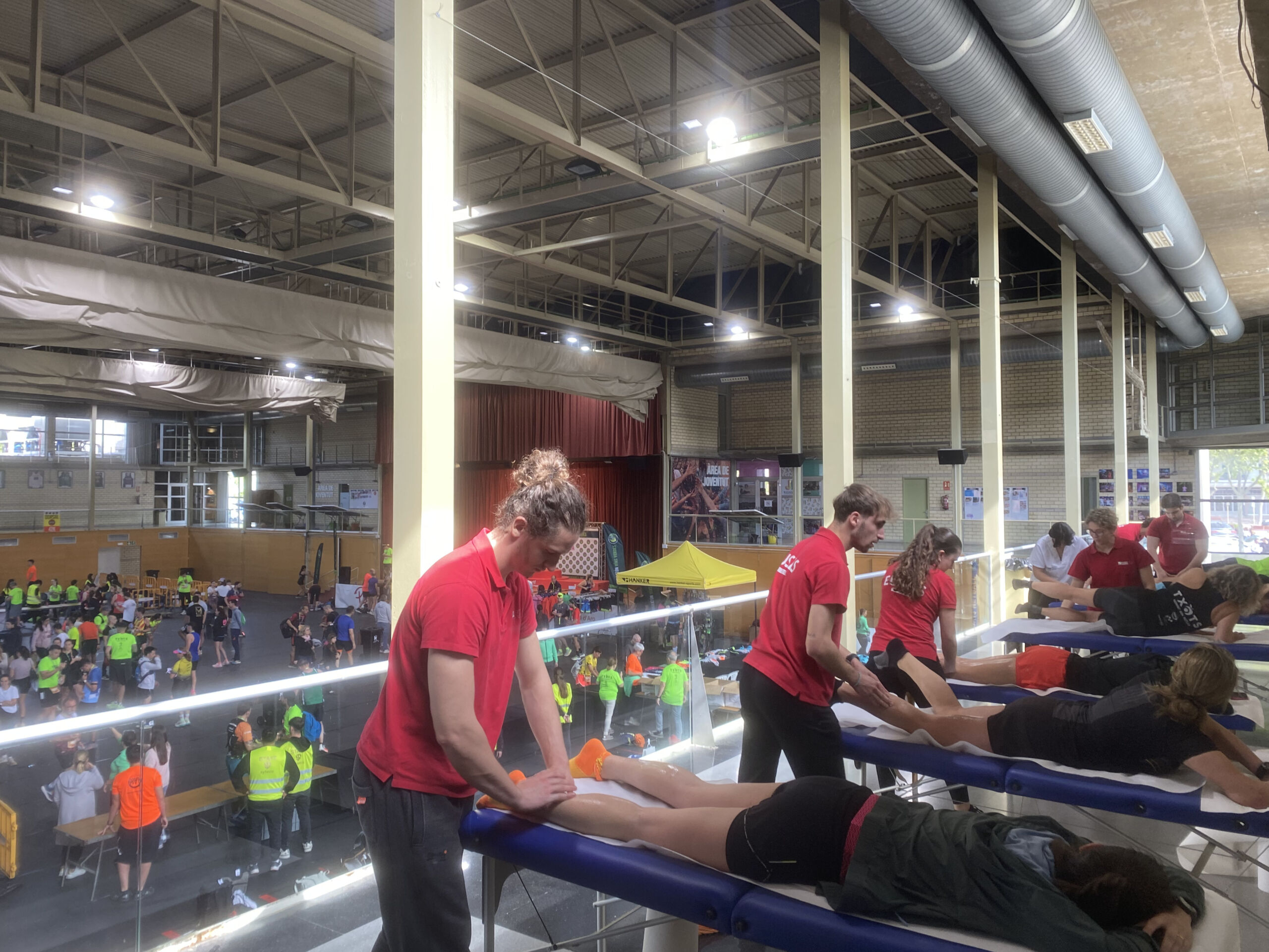 EUSES ha estado presente, un año más, en uno de los acontecimientos tradicionales de su calendario de voluntariados: el Maratón Vías Verdes, una prueba con salida desde Girona y llegada en Platja d’Aro (42 kilómetros), pero en la cual los participantes pueden escoger recorridos más cortos saliendo de Cassà (30 kilómetros), Llagostera (21 kilómetros) y Santa Cristina d’Aro (10 kilómetros). EUSES ha realizado puntos de control en la salida, en Quart y sobre todo en la llegada, en el Palau de Congresos de Platja d’Aro, donde se ha habilitado un punto de fisioterapia que ha sido supervisado por los fisioterapeutas de EUSES Alumni Nerea Álvarez i David de la Barrera. Allí, quince estudiantes del Grado (Dorian Cumont, Mathys Essouki, Alexia Van Enis, Marie Aurier, Emma Duverger, Clement Fruguere, Carlota Hernández, Lupi Laurine, Romain Coulon, Coralie Eychenne, Thomas Maerten, Noa Veillenave-Roussel, Tao Auriol, Lenny Giraud-Vanius i Armand Diné) han realizado masstges y estiramientos para acelerar la recuperación muscular de los participantes.
