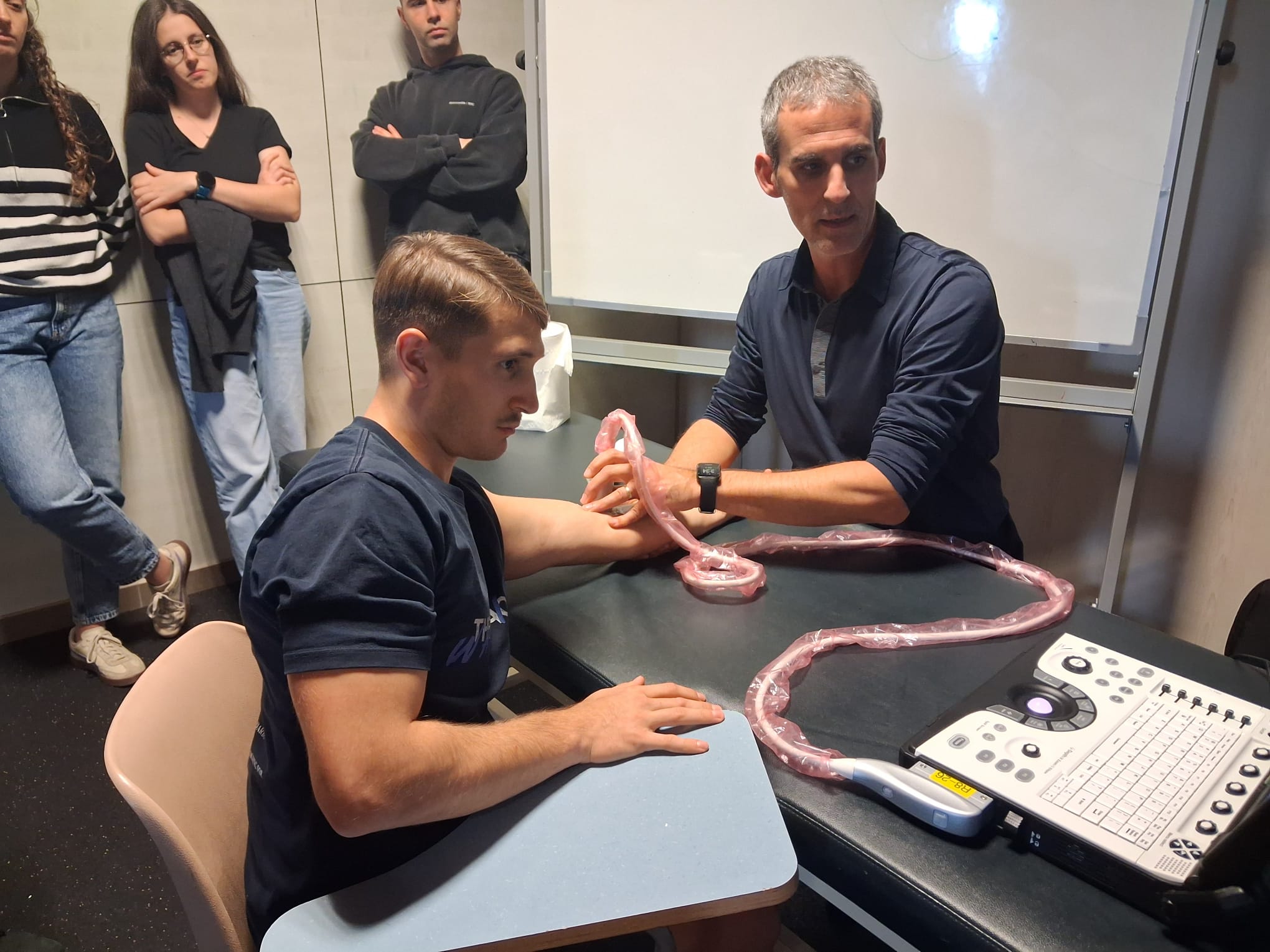 El pasado sábado se inició en las instalaciones de la EUSES de Salt un nuevo curso de posgrado para fisioterapeutas, esta vez orientada a la aplicación de la ecografía neuromusculoesquelética dentro del trabajo de fisioterapia. La formación tiene una carga lectiva de 30 horas repartidas en dos seminarios de 15 horas cada uno y está previsto que finalice el próximo mes de diciembre. El curso está impartido por Carles Munné, fisioterapeuta y Dr. en Curas Integrales y Servicios de Salud, que es profesor en los grados de Fisioterapia en EUSES y de Medicina de la Universitat de Girona.