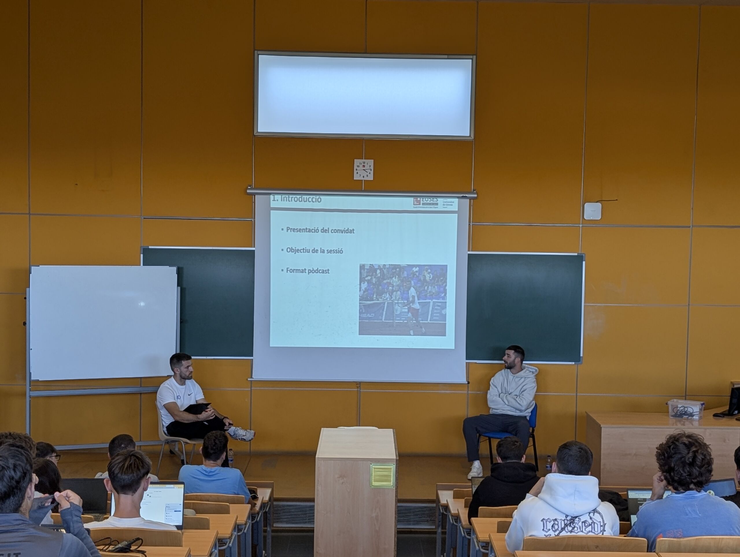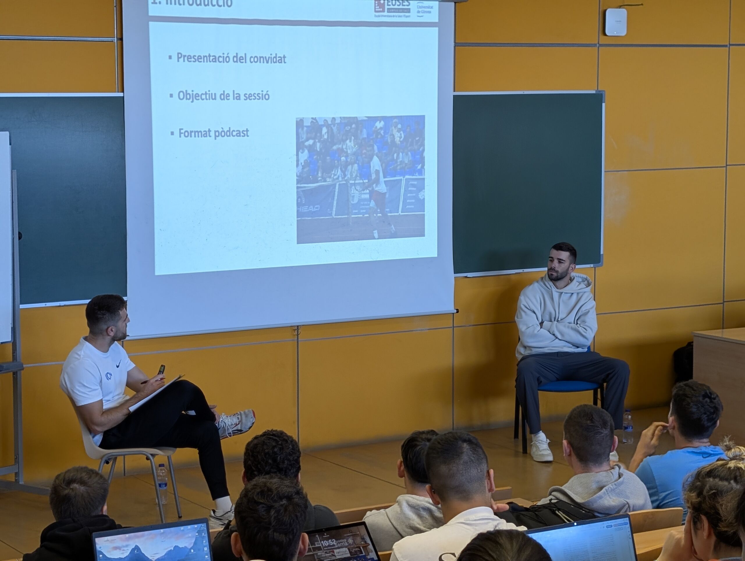 La sesión, dinamizada por el docente de la asignatura, Ivan Ribas, se desarrolló en formado podcast: una conversación próxima y enriquecedora en que se trataron temas como la realidad del tenis profesional, los retos del día a día de los jugadores y la transición del rol de jugador al de entrenador. Para cerrar la sesión, el alumnado tuvo la oportunidad de formular preguntas y compartir inquietudes con la Edu Esteve, aprovechando sus conocimientos y experiencia de primera mano.
