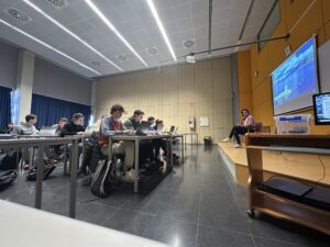 Precisamente, la sesión la inició Montse haciendo una descripción muy clara, próxima e inspiradora de su vivencia con la enfermedad, hablando de los síntomas principales que experimenta, de su día a día y de cómo afronta sus actividades cotidianas. A continuación, los estudiantes tuvieron la oportunidad de formular preguntas para completar la recogida de información.