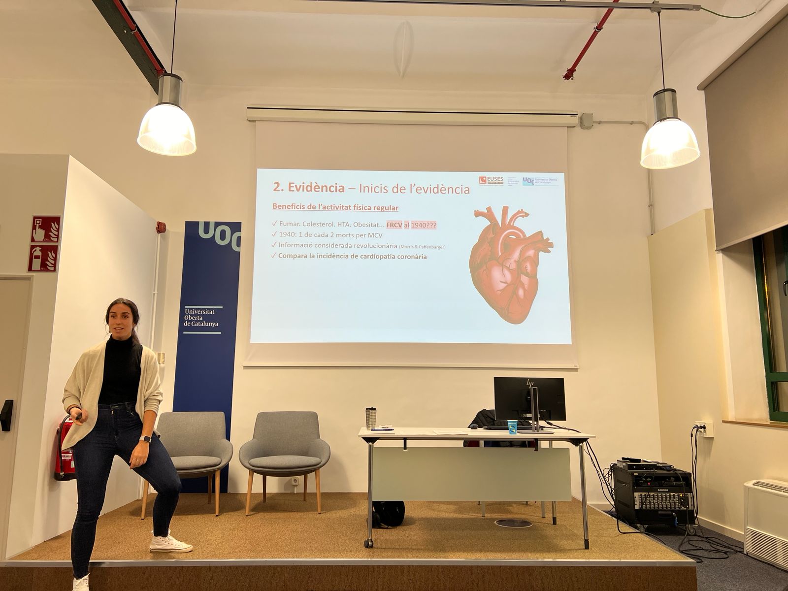 La Dra. Anna Ferrusola, que en el Campus de Salt imparte las asignaturas de Fisiología del Ejercicio I (1º curso) y Primeros Auxilios y Prescripción de Ejercicio Físico para la Salud (3º curso), ha impartido este jueves un taller para la Universitat Oberta de Catalunya aprovechando las actividades que ha programado la UOC con motivo de su Semana Saludable. El taller impartido por la Dra. Anna Ferrusola tiene como objetivo concienciar sobre los riesgos del sedentarismo y ofrecer estrategias para combatirlo a través de la actividad física.
