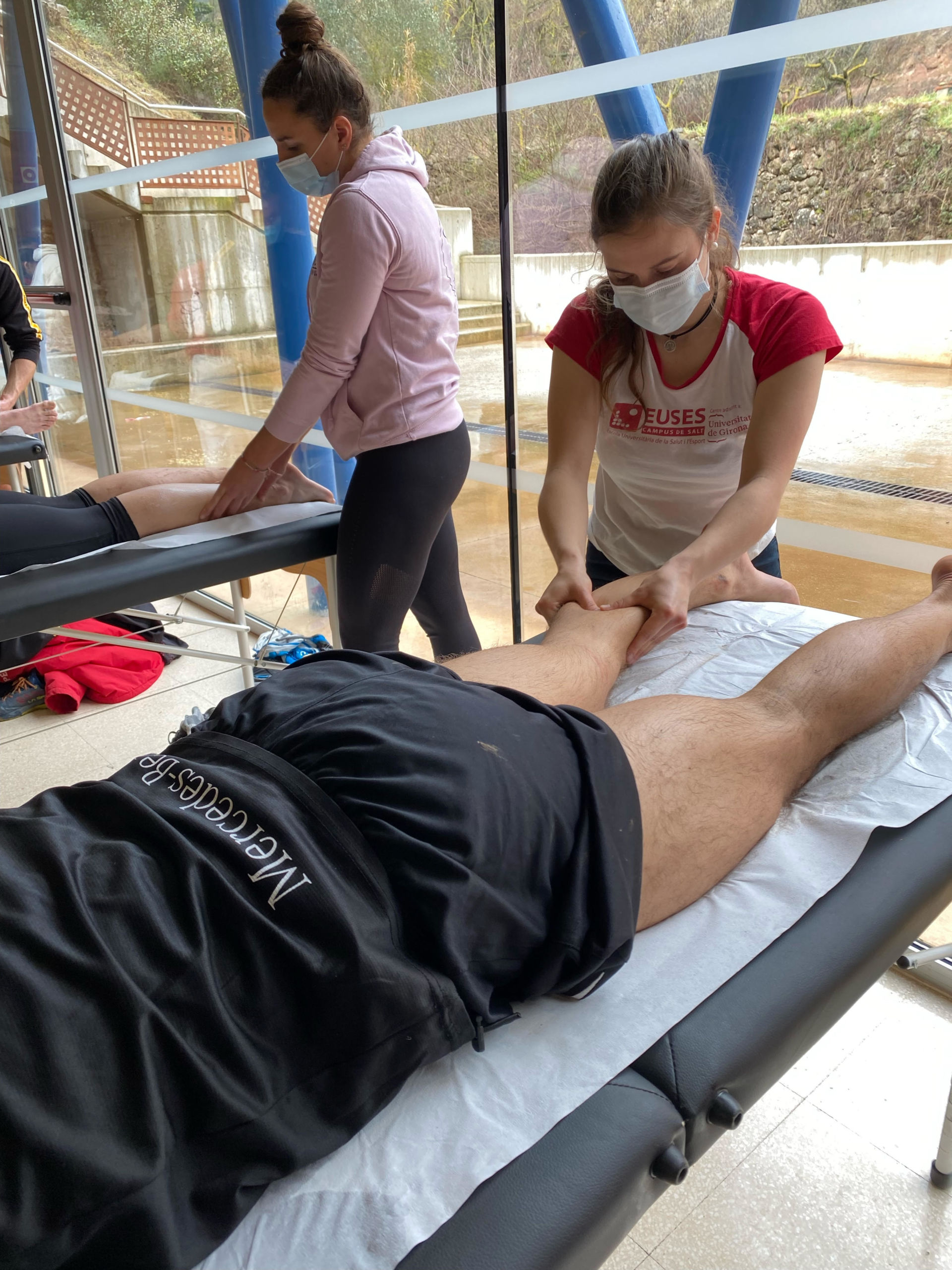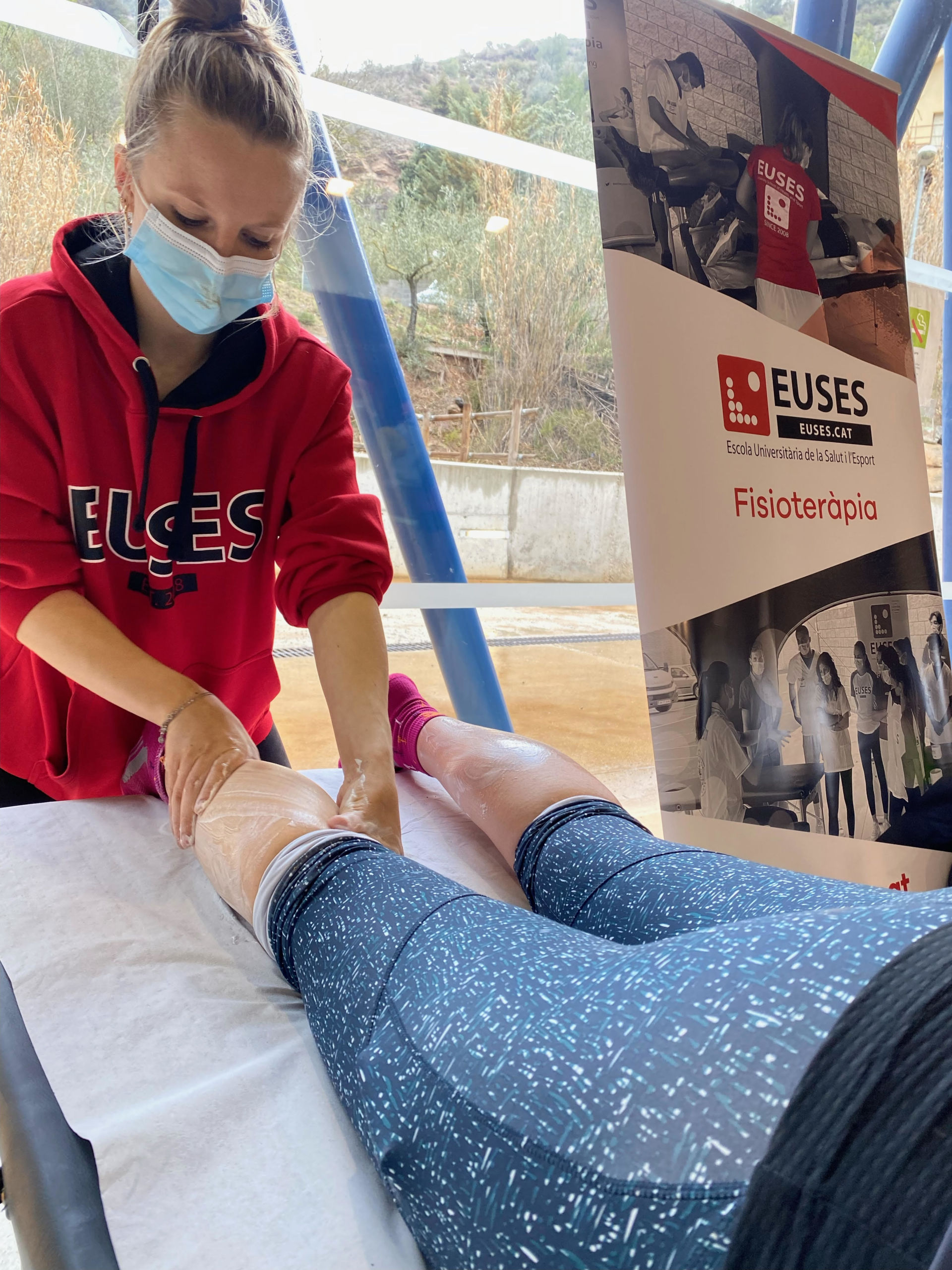 Alumnes del Grau en Fisioteràpia de l’Escola Universitària de la Salut i l’Esport han col·laborat aquest diumenge en una nova edició de la Montserrat Sky Race, una cursa de muntanya pels camins i corriols de la serra del massís de Montserrat. Els organitzadors, Klassmark, van preveure dos recorreguts, l’Skyrace (25 quilòmetres i 1.500 metres de desnivell positiu) i l’Express (13 quilòmetres i un desnivell de 700 metres). Sota la supervisió del fisioterapeuta d’EUSES Alumni Jonathan Duran, els alumnes que van realitzar tècniques de recuperació muscular (bàsicament massatges i estiraments) als esportistes al final de la prova en una zona habilitada al pavelló de Monistrol van ser Bastien Roux, Claudie Chamboredon, Solène Gallego, Elsa Thierry, Solène Plouseau, Alexia Maille, Adeline Lecointe, Thomas Sol i Yann Le Person.