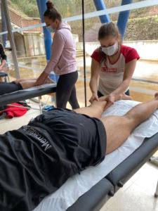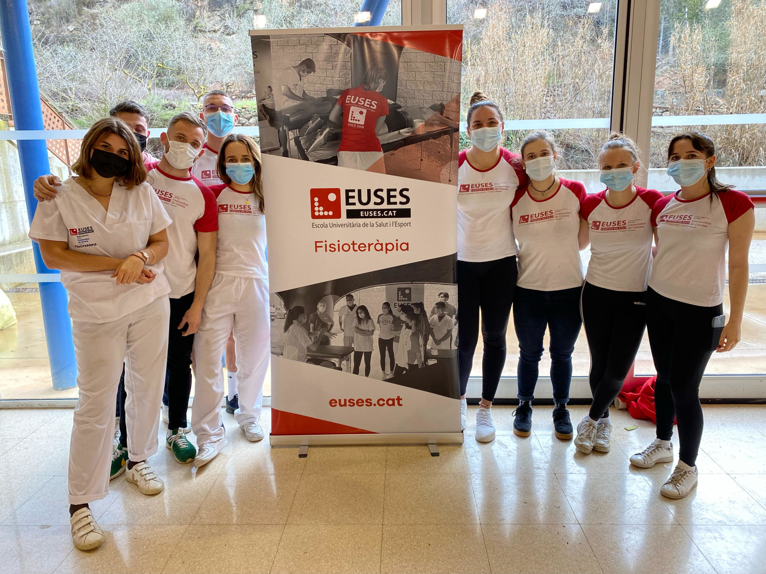 Alumnes del Grau en Fisioteràpia de l’Escola Universitària de la Salut i l’Esport han col·laborat aquest diumenge en una nova edició de la Montserrat Sky Race, una cursa de muntanya pels camins i corriols de la serra del massís de Montserrat. Els organitzadors, Klassmark, van preveure dos recorreguts, l’Skyrace (25 quilòmetres i 1.500 metres de desnivell positiu) i l’Express (13 quilòmetres i un desnivell de 700 metres). Sota la supervisió del fisioterapeuta d’EUSES Alumni Jonathan Duran, els alumnes que van realitzar tècniques de recuperació muscular (bàsicament massatges i estiraments) als esportistes al final de la prova en una zona habilitada al pavelló de Monistrol van ser Bastien Roux, Claudie Chamboredon, Solène Gallego, Elsa Thierry, Solène Plouseau, Alexia Maille, Adeline Lecointe, Thomas Sol i Yann Le Person.
