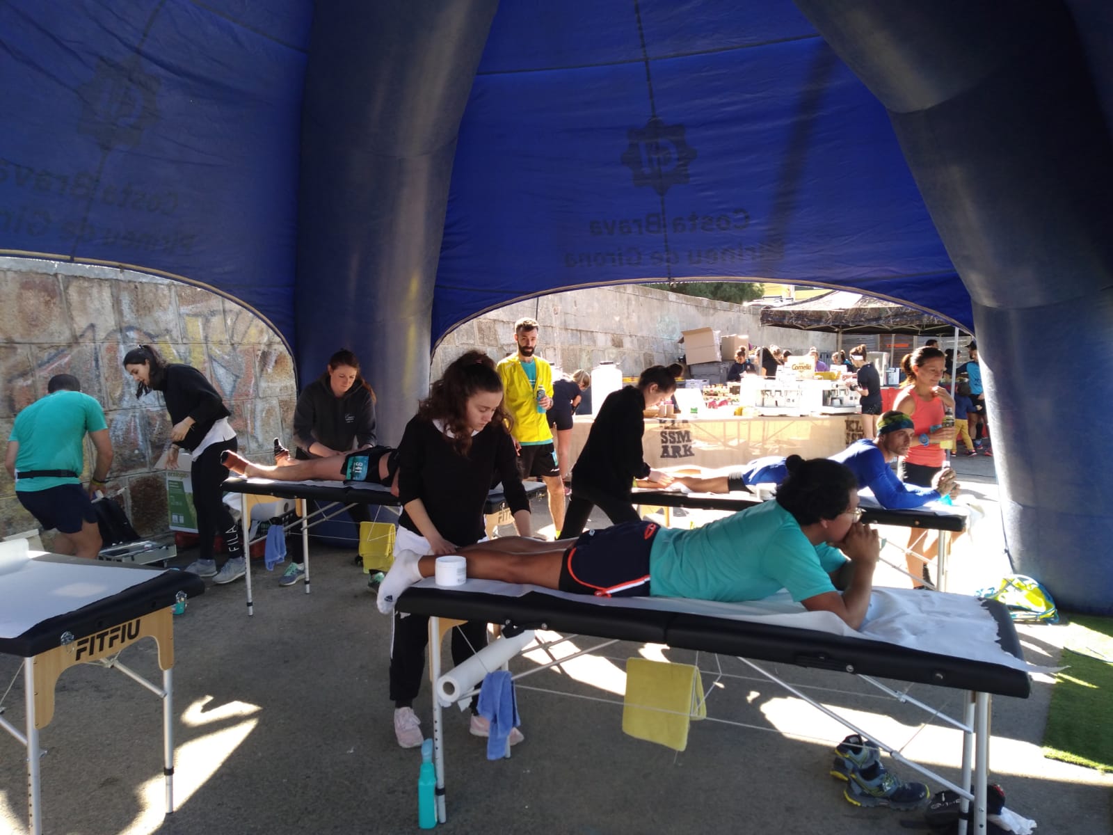 Sota la tutorització del fisioterapeuta d’EUSES Alumni Sebas Fidalgo, els estudiants del Grau en Fisioteràpia Karell Mestrallet, Léa Tagliante, Salomé Khaitrine i Victoria Talou van realitzar tècniques de recuperació muscular (essencialment massatges i estiraments) en la zona d’arribada als participants que van prendre part en una nova edició del Trail Costa Brava, que va tenir el centre neuràlgic a la platja de Palamós. Els corredors i corredores van poder escollir entre tres recorreguts:  l’express (13 quilòmetres i 350 metres de desnivell), el trail (22 quilòmetres i 800 metres de desnivell) i el més exigent, el Marathon (43 quilòmetres i un desnivell de 2.100 metres).