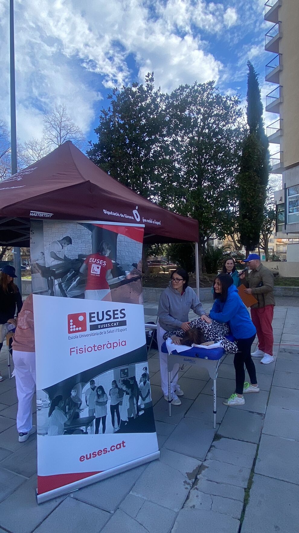L’Escola Universitària de la Salut i l’Esport ha col·laborat en la 12a Jornada de l’Esport Femení que s’ha celebrat aquest diumenge en diferents indrets de la ciutat (la Plaça de Catalunya, la Plaça de Salvador Espriu, el riu Onyar, la Plaça de Calvet i Rubalcaba i el Passeig General Mendoza) en els quals s’hi han realitzat un munt d’activitats esportives. Els estudiants del Grau en Fisioteràpia Louise Doulcet, Lucas Rousic, Anna-Lou Abadie, Idylle Yildiz i Ànnia Massaguer van situar-se en una zona habilitada amb lliteres on, sota la supervisió de la fisioterapeuta d’EUSES Alumni Nerea Álvarez, van realitzar una sessió de massatges a les participants de la jornada que així ho van desitjar.