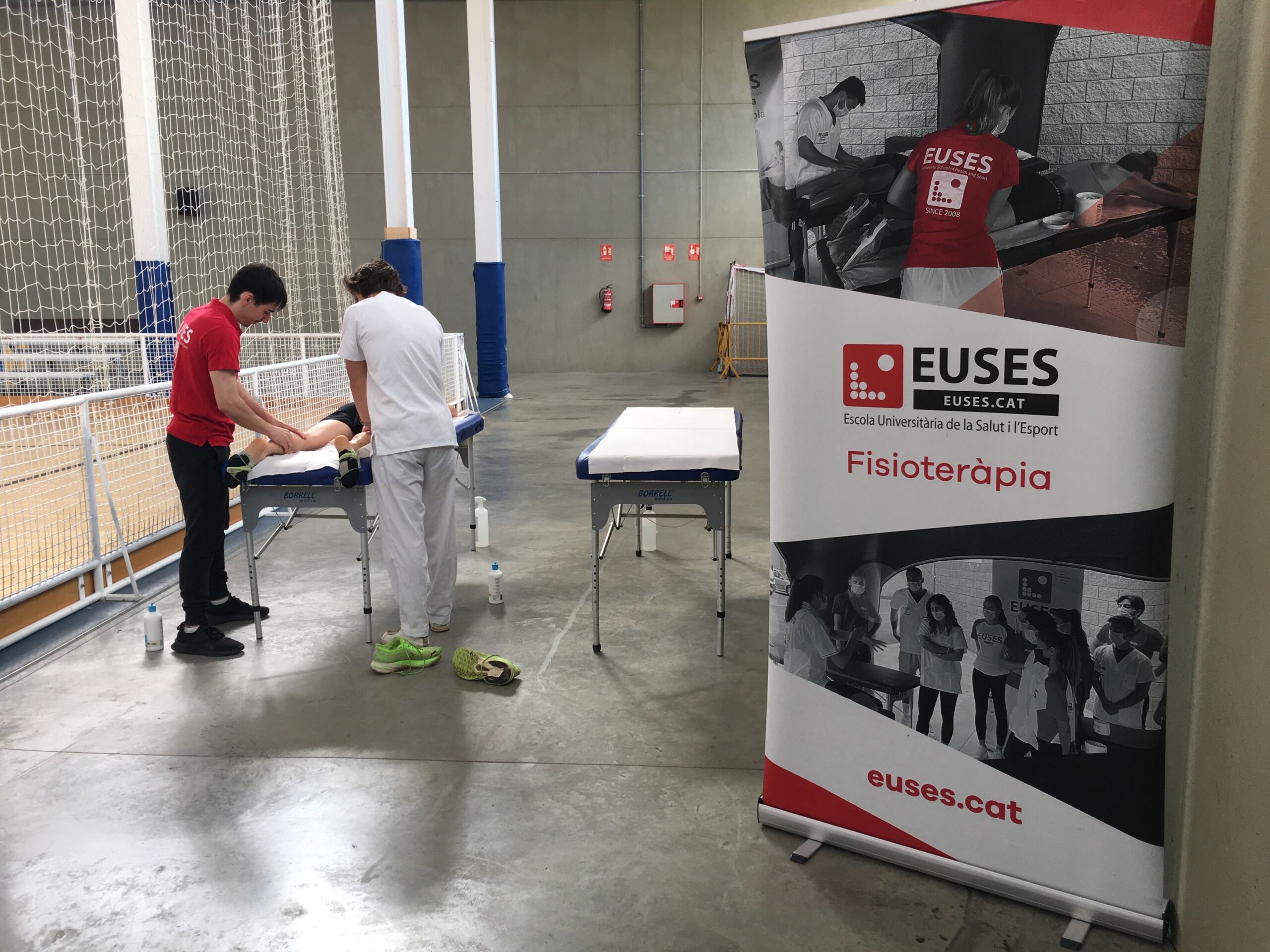 La cursa solidària de primavera de Sant Julià de Ramis ha arribat a la seva vuitena edició i EUSES hi ha tornat a estar present amb un servei de fisioteràpia al final de la prova, que ha tingut dos recorreguts (de 5 i 10 quilòmetres), a més d’una cursa infantil per als més menuts. Sota la supervisió de la fisioterapeuta d’EUSES Alumni Alba Garcia, els estudiants del Grau Roger Cervera i Hippolyte Soucaze han realitzat al costat de l’arribada i en una zona convenientment habilitada, tècniques de recuperació muscular als participants, amb massatges i estiraments.