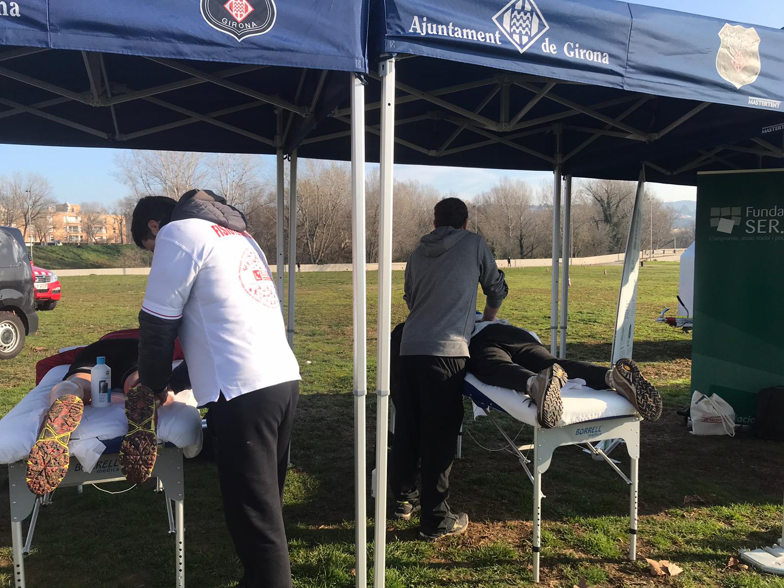 Aquest matí ha tingut lloc a la zona del Parc de les Ribes del Ter la 9a edició de la cursa i la marxa popular de la policia municipal de Girona-Memorial Javi Hernández. L’Escola Universitària de la Salut i l’Esport hi ha posat el seu gra de sorra encarregant-se de la recuperació dels participants al final de la prova, a la zona de Fontajau. Sota la supervisió del fisioterapeuta d’EUSES Alumni David Fernández, els estudiants del Grau en Fisioteràpia Lucas Colombier i Hippolyte Huet han realitzat tècniques de recuperació muscular (massatges i estiraments) en una zona habilitada prop de l’arribada.