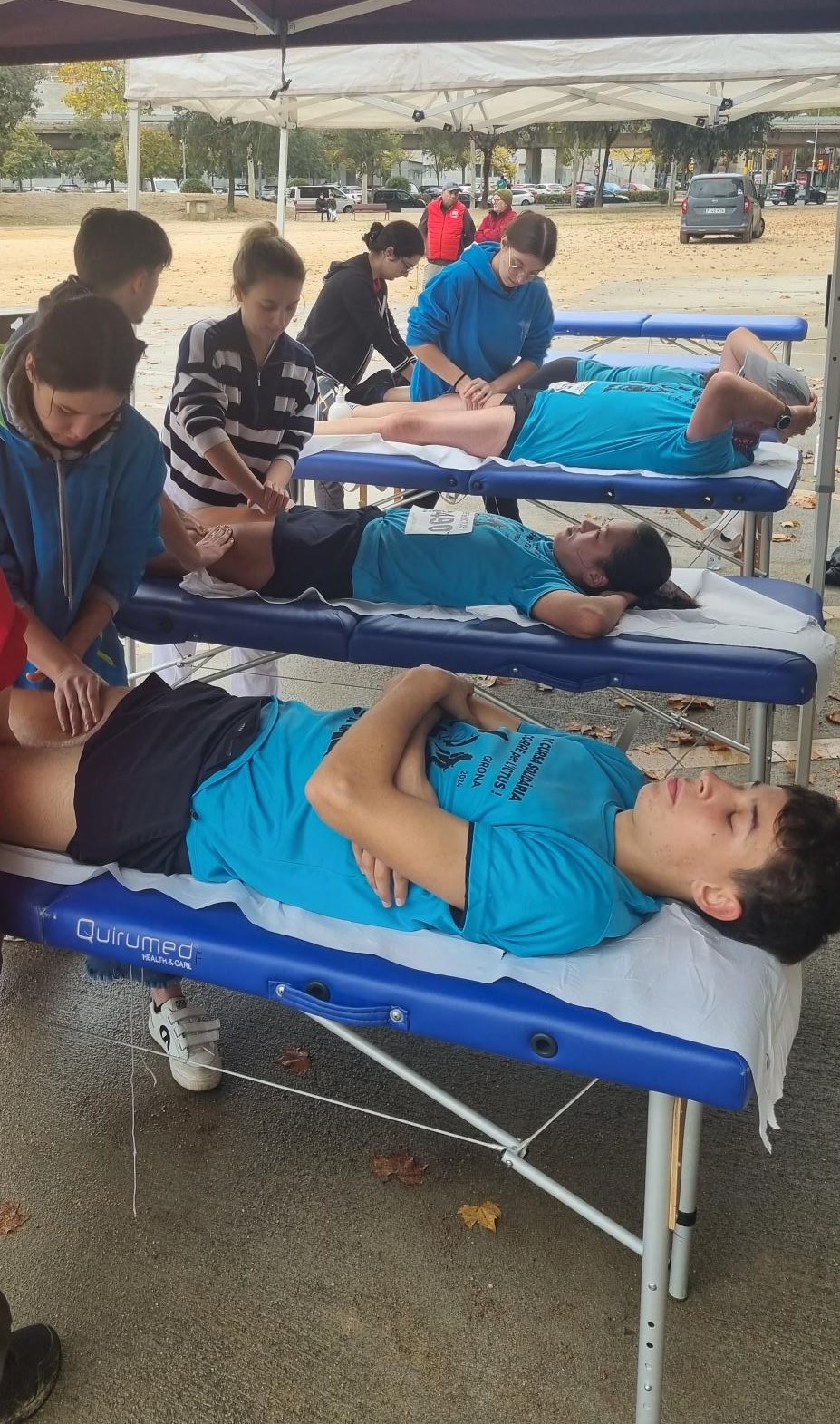 Estudiants del Grau en Fisioteràpia han col·laborat aquest diumenge en la cursa solidària “Corre per l’Ictus” celebrada aquest diumenge a Girona i organitzda per l’Institut Català de la Salut. Supervisats pel fisioterapeuta d’EUSES Alumni David de la Barrera, els alumnes Lorette Taffanel, Robin Marquez, Marine Macron, Charlotte Fabre, Caroline Coppee i Laura Dion han realitzat massatges i estiraments als participants que així ho han desitjat en el punt de servei de fisioteràpia habilitat prop de l’arribada. L’organització va dissenyar una marxa de 5 quilòmetres i una cursa de 10 quilòmetres, les dues amb sortida i arribada a la Copa. Tota la recaptació va anar destinada a pacients amb ictus i les seves famílies.