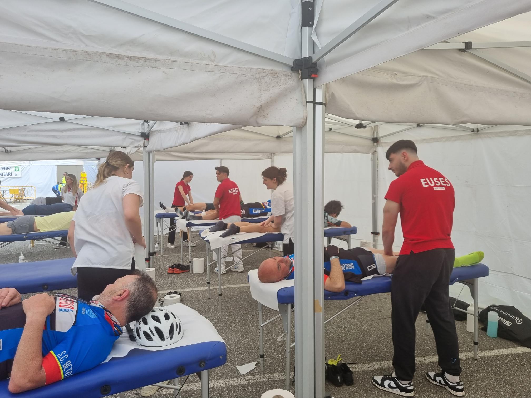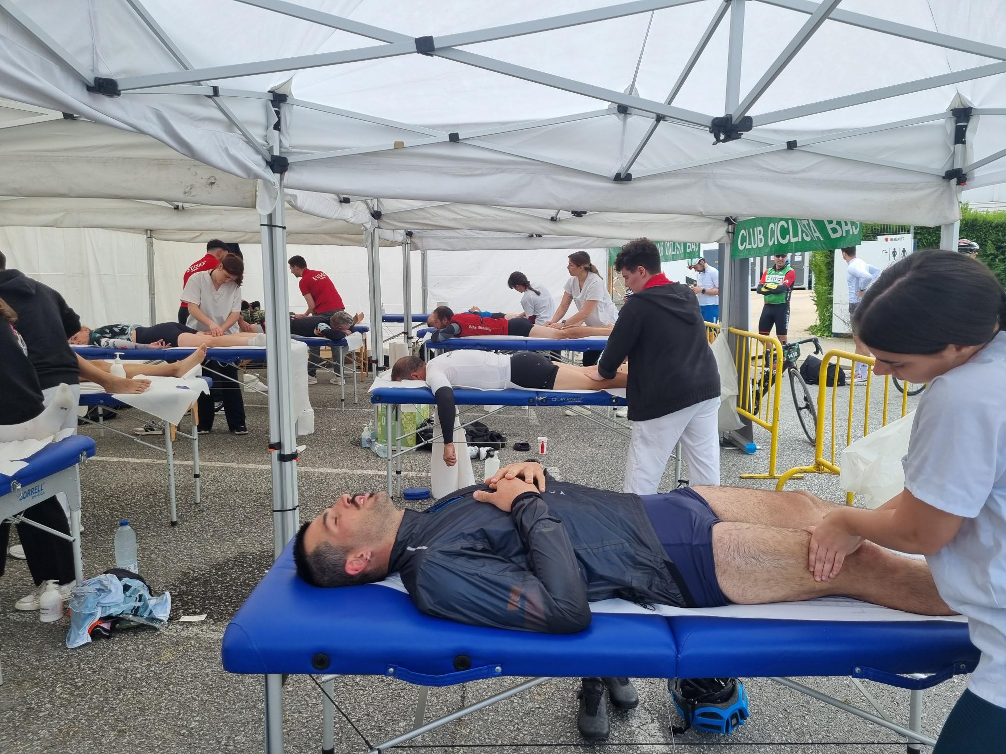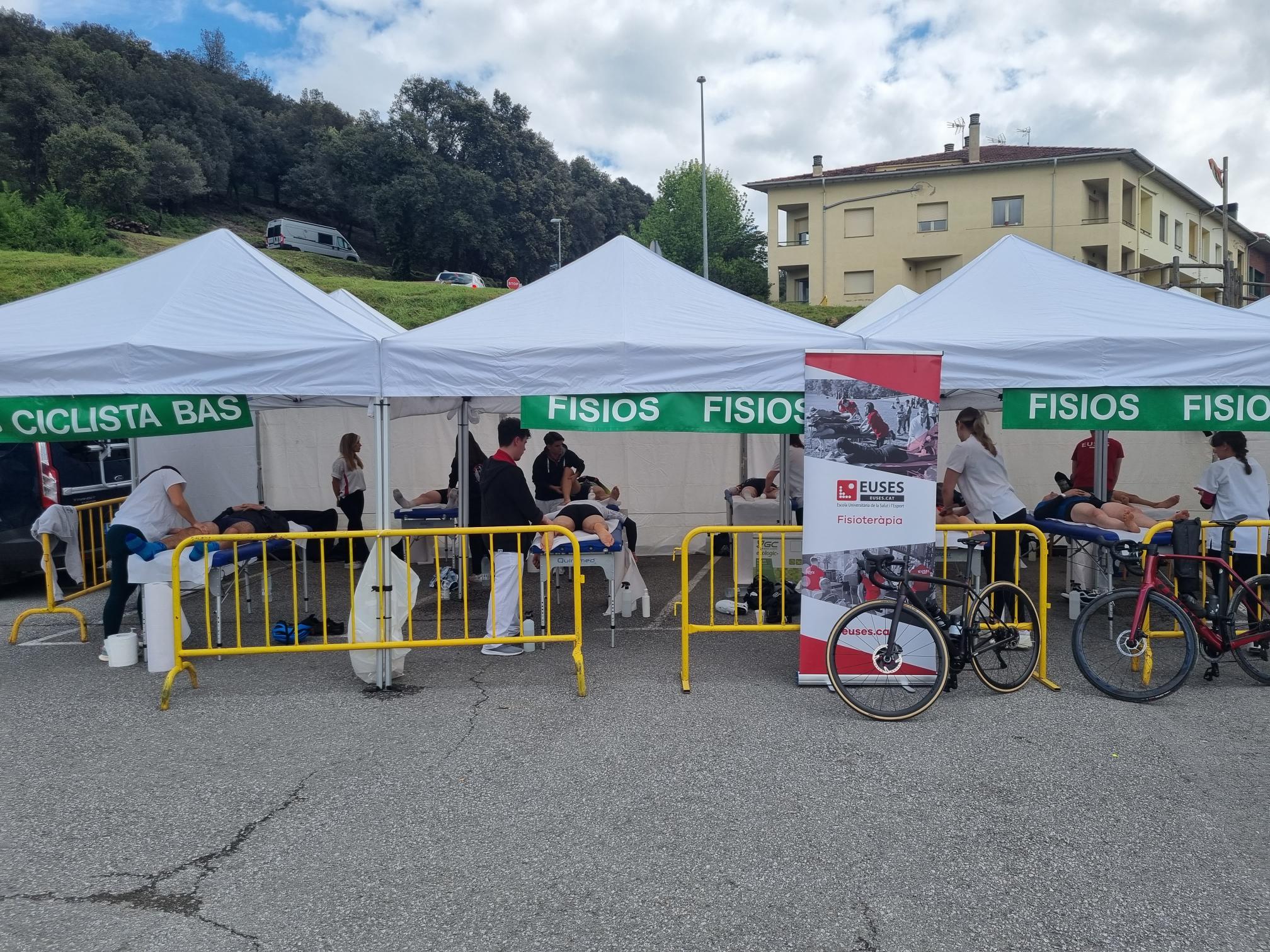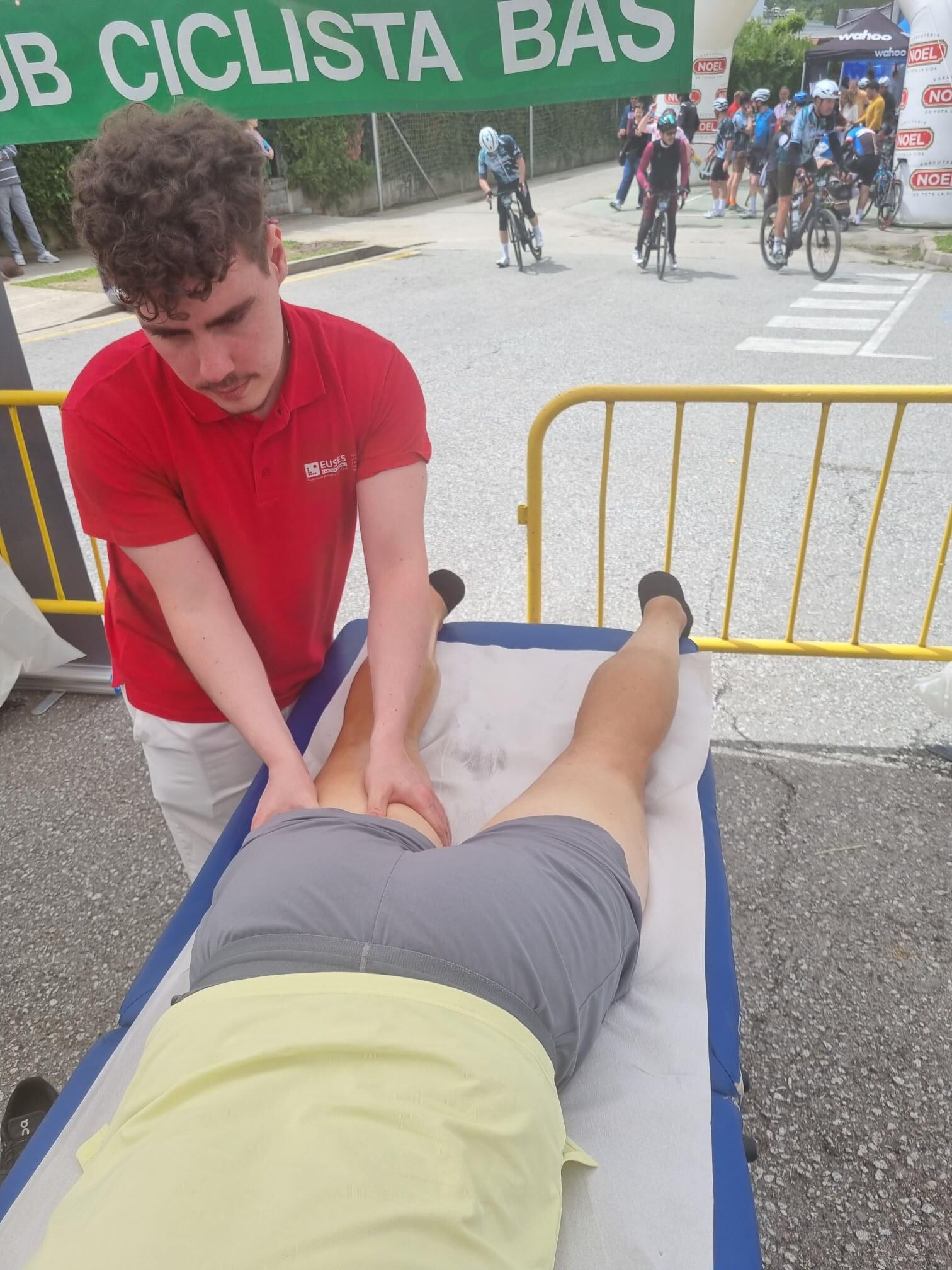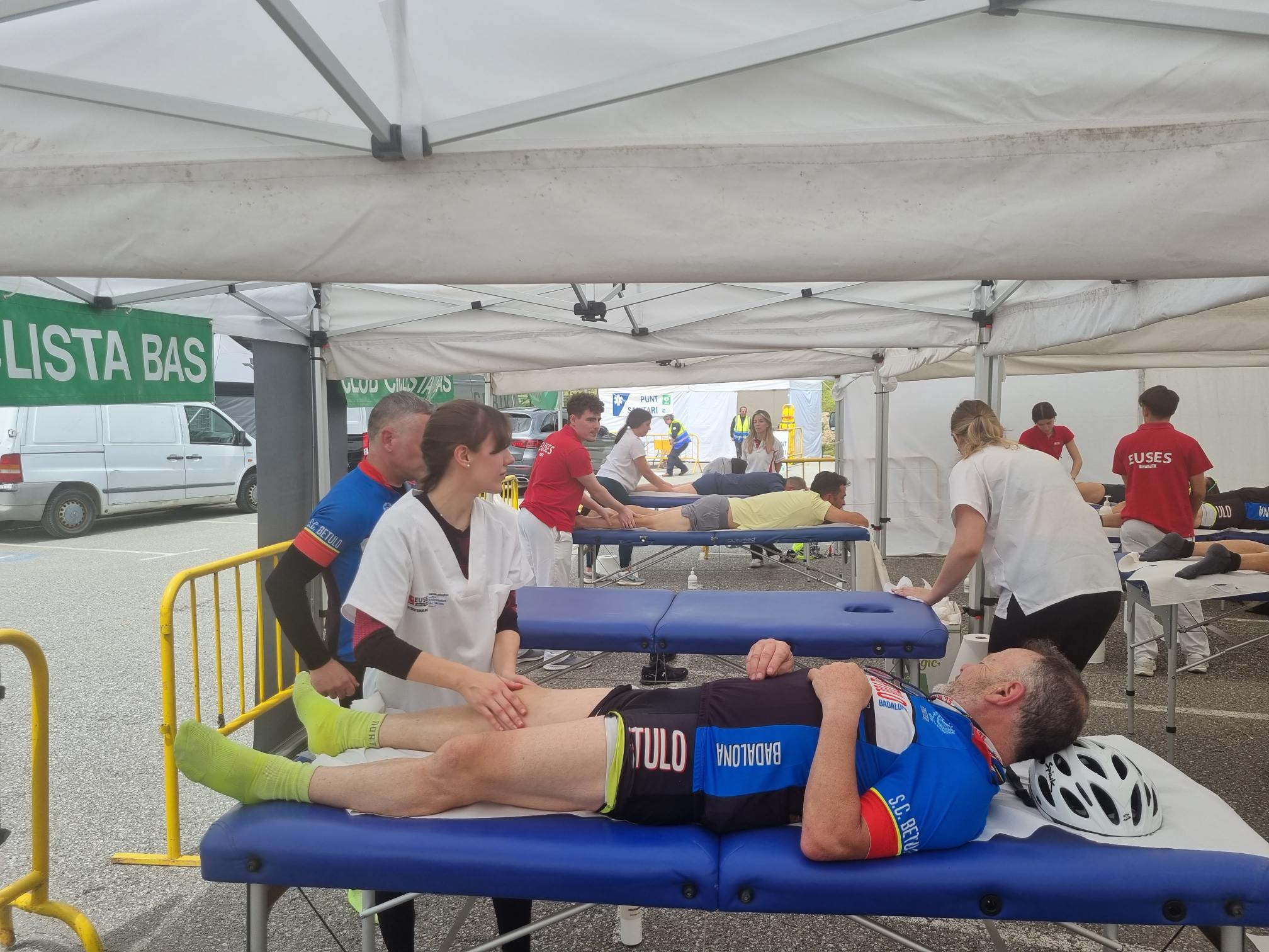 Un any més, l’Escola Universitària de la Salut i l’Esport no va faltar a la cita d’una de les proves cabdals del calendari ciclista com es La Remences-Energy Tools, una prova organitzada pel Club Ciclista Bas. Enguany, els participants (més de 2.250) han pogut escollir novament entre un itinerari llarg (175 quilòmetres i un desnivell acumulat de 2.600 metres) i un de més curt (100 quilòmetres amb un desnivell de 1.280 metres). Els dos circuits sortien i arribaven a Sant Esteve d’en Bas, el centre neuràlgic de la prova. En una zona habilitada a prop de l’arribada, el contingent d’EUSES format per tres tutors d’Alumni (David de la Barrera, Laia Ciendones i Elisabeth del Cid) i nou estudiants del Grau en Fisioteràpia (Maxence Lyegre, Laurie Raynaud, Carlina Uriol, Yoan Branchereau, Louis Cachau, Elsa Ferrer, Emile Portejoie, Carla Baccherini i Antoine Cazet) van realitzar tècniques de recuperació muscular (bàsicament massatges i estiraments) als ciclistes que així ho van desitjar.