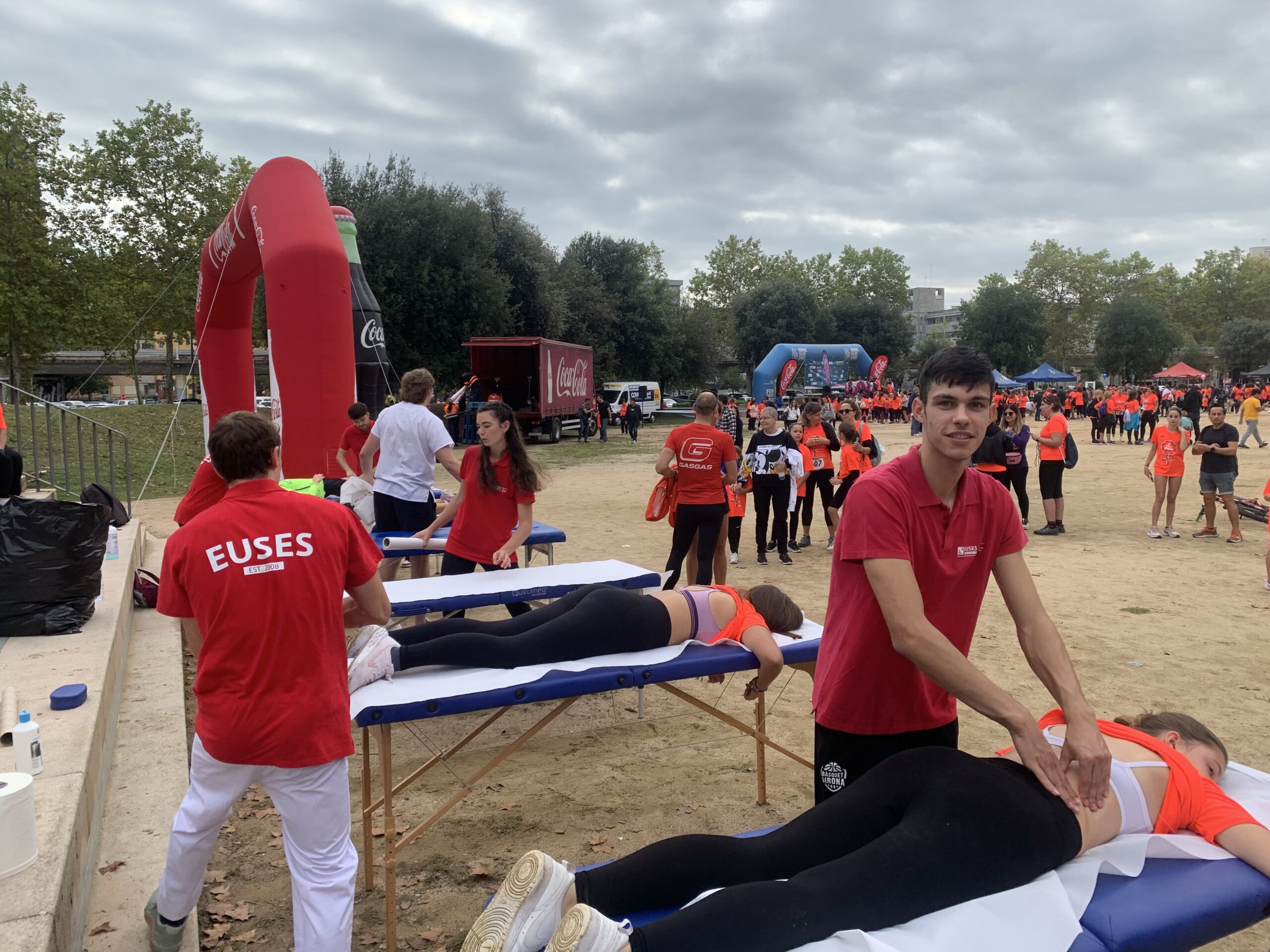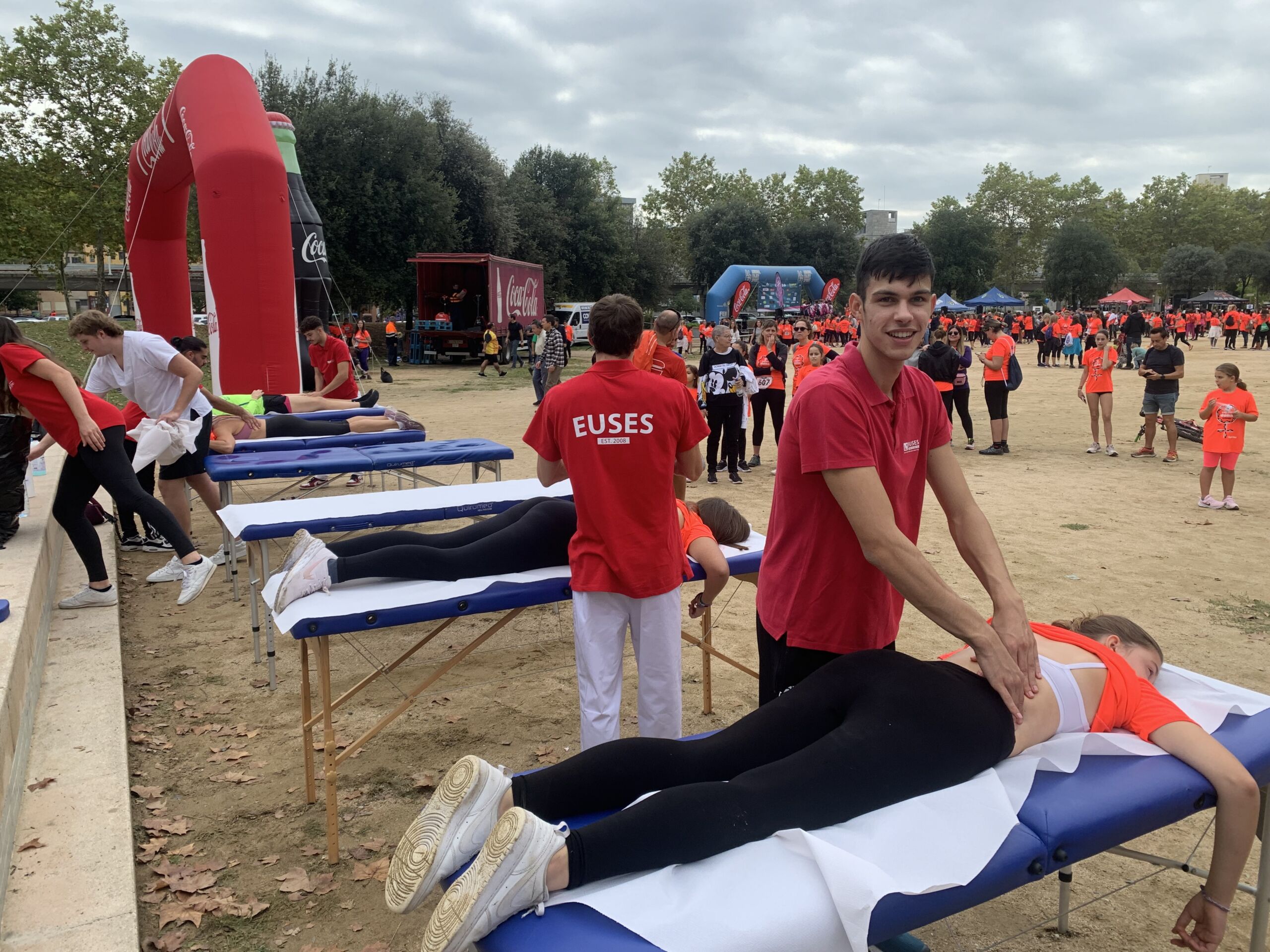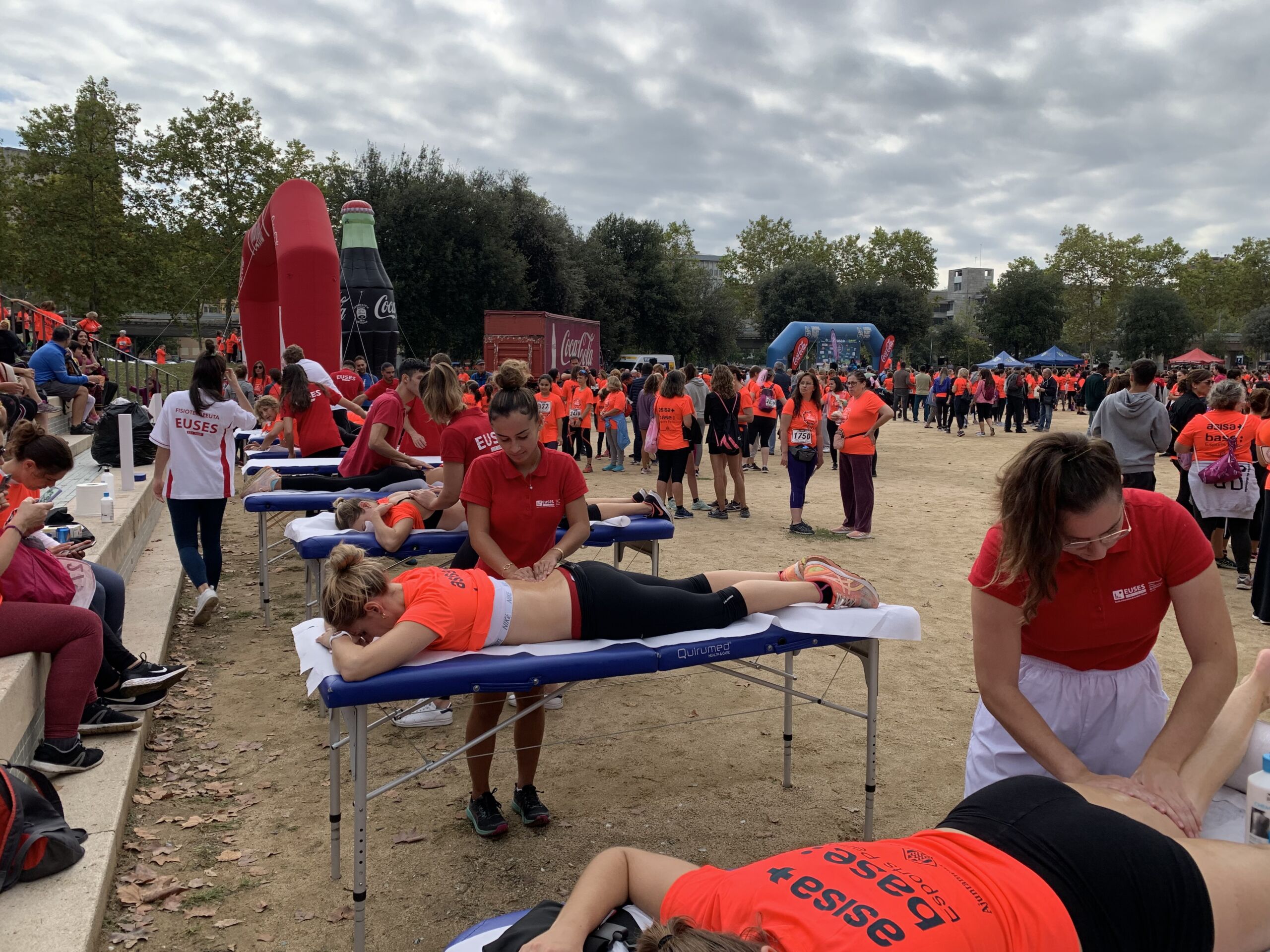 Un any més, l’Escola Universitària de la Salut i l’Esport va col·laborar en una nova edició, la novena, de la Cursa de la Dona-Esports Parra, que es va celebrar diumenge pels carrers de la ciutat i que va aplegar més de 7.500 participants. Al final de la cursa, EUSES va realitzar un important desplegament amb dues tutores d’Alumni (Ganda Singhateh i Alba Garcia) i deu estudiants del Grau en Fisioteràpia (Camille Gachet, Anais Puech, Maelys Crozes, Baptiste Dubarry, Lucas Saneuf, Ulises Sánchez, Carla Lafitte, Noa Cortés, Emma Roselli i Jean Baptiste Morchain) els quals van realitzar massatges i estiraments als participants per accelerar la seva recuperació muscular després de la prova, de cinc quilòmetres de recorregut.