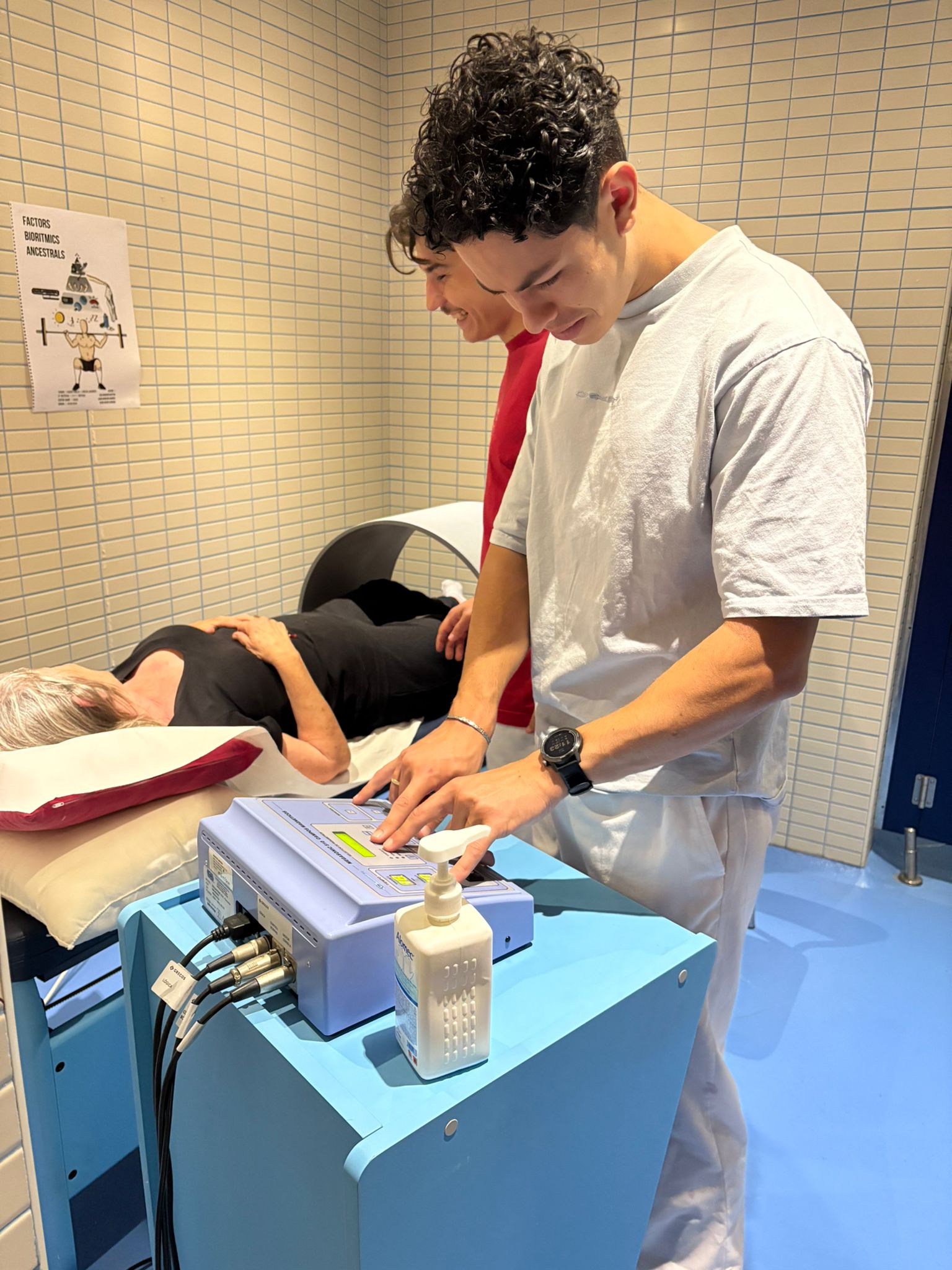 Els alumnes van realitzar fa setmanes una primera valoració als pacients (es van prendre les dades clíniques per identificar els que tenen risc de caiguda o risc metabòlic) per determinar el tractament adequat a les seves dolències. Aquest tractament podia anar des de massatges fins a estiraments, passant també per termoteràpia, aplicació de corrents, teràpies osteopàtiques, etcètera. Una vegada més es van exhaurir totes les places disponibles en un projecte on el benefici es mutu: els alumnes per l’aprenentatge que suposa tractar amb pacients reals i els avis per poder ser tractats amb actuacions fisioterapèutiques.