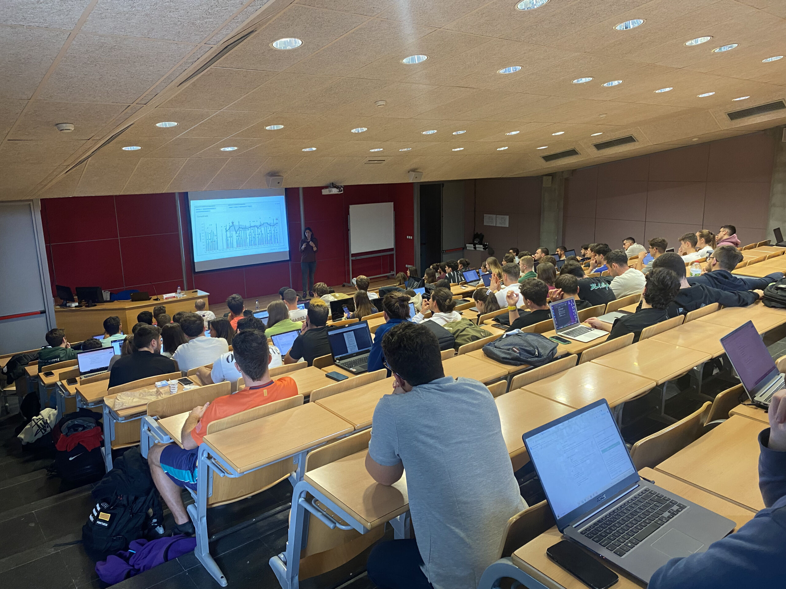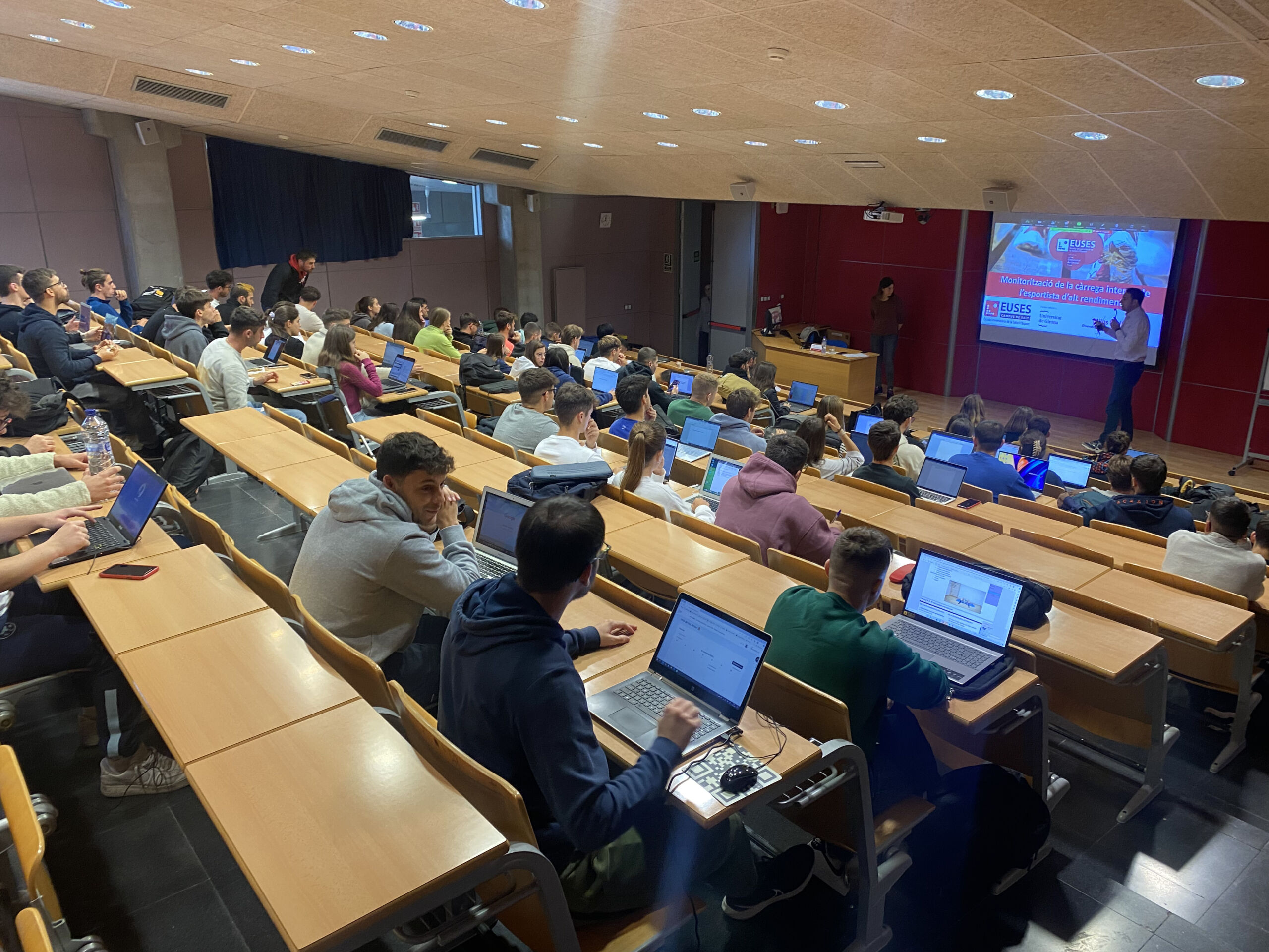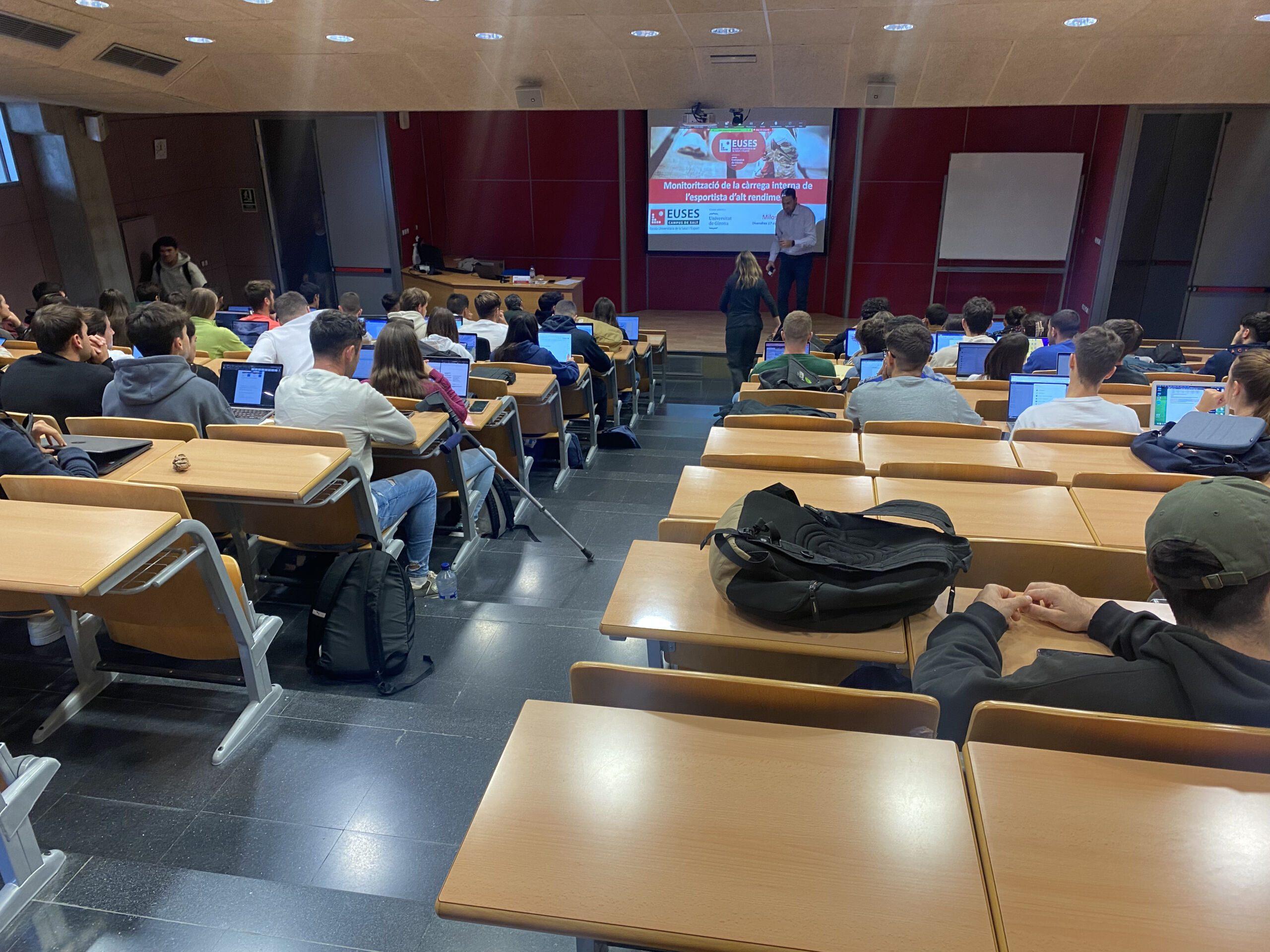 Aquest divendres s’ha celebrat l’onzena Jornada Anual EUSES Alumni, que ha tingut com a participació destacada la presencia de la Dra. Milos Mallol (Exercise physiologist / Sport Scientist), la qual, a més d’exprofessora de la casa, es també membre de l’àrea de preparació física del primer equip del FC Barcelona. Milos Mallol va desenvolupar la ponència “El control de la càrrega interna en l’esport d’alt rendiment” just després que la directora d’EUSES Alumni, Sílvia Roche, obrís l’acte presentant l’associació de graduats de l’EUSES als estudiants de 4t curs, ja que la Masterclass de Milos Mallol es va emmarcar dins l’assignatura de Teoria de l’Entrenament 3 del Grau en CAFE, que imparteix el professor Edu Garcia. La classe, excepcionalment, va estar oberta a membres de la comunitat Alumni i també a estudiants del Grau en Fisioteràpia aprofitant que va formar part de la jornada anual. Sílvia Roche va presentar als futurs graduats els molts avantatges d’Alumni (borsa de treball, pla d’avantatges, Talent Day, etc…) i va donar pas a la intervenció de Milos Mallol.