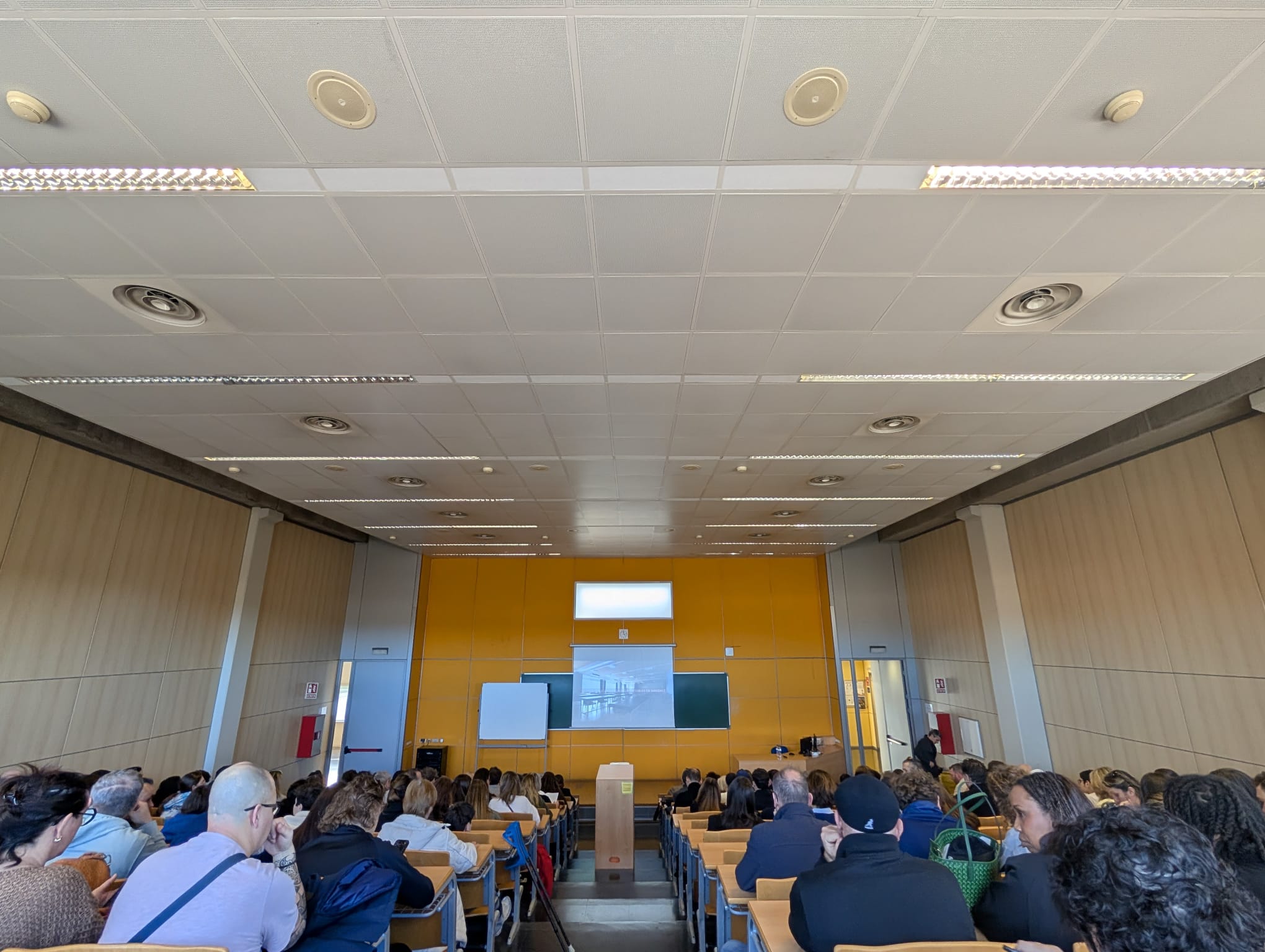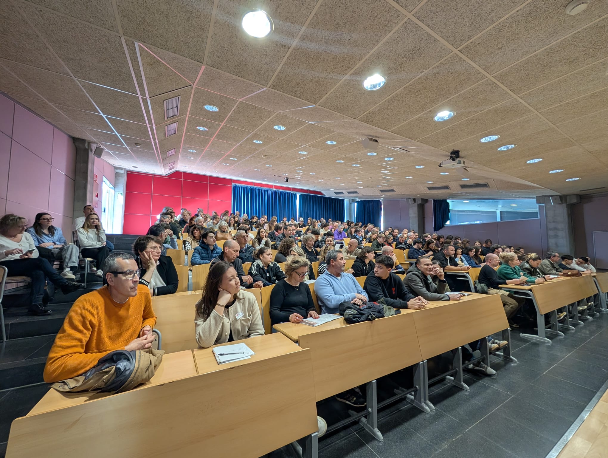 També hi ha hagut les parts més informatives, que s’han concentrat a l’Aula Magna (una sessió) i a l’Aula 8 (dues). Allà, els assistents han pogut visionar el video amb les explicacions del Dr. Gerard Muñoz (director de Physiotherapy Barcelona i professor del Campus de Salt) sobre tots els aspectes acadèmics (pla d’estudis, convenis, practiques…), mentre que també han intervingut, per ampliar la part acadèmica i exposar altres aspectes més administratius i logístics (procés de matriculació, allotjament, practiques…) el director de Fisioteràpia del Campus de Salt, Ernest Esteve; els coordinadors Quim Llorella i Xavier Garcia; i membres de PAS i de comunicació com Pau Vila, Sarah Vicente, Teresa Fernàndez, Albert Deulofeu, Chus Fernández i Clara Masferrer.
