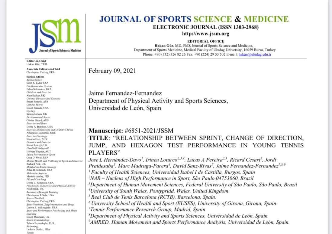 La prestigiosa revista científica Journal of Sports Science&Medicine  ha acceptat un nou article amb participació del professor d’EUSES Dr. Marc Parera com a integrant d’un equip d’investigadors que ha estat liderat pel Dr. Jaime Fernández, professor del màster de readaptació de la Universidad de León. La recerca porta per títol “Relationship between sprint, change of direction, jump and hexagon test performance in young tennis players” i és un estudi que es va realitzar al Real Club Tennis de Barcelona.