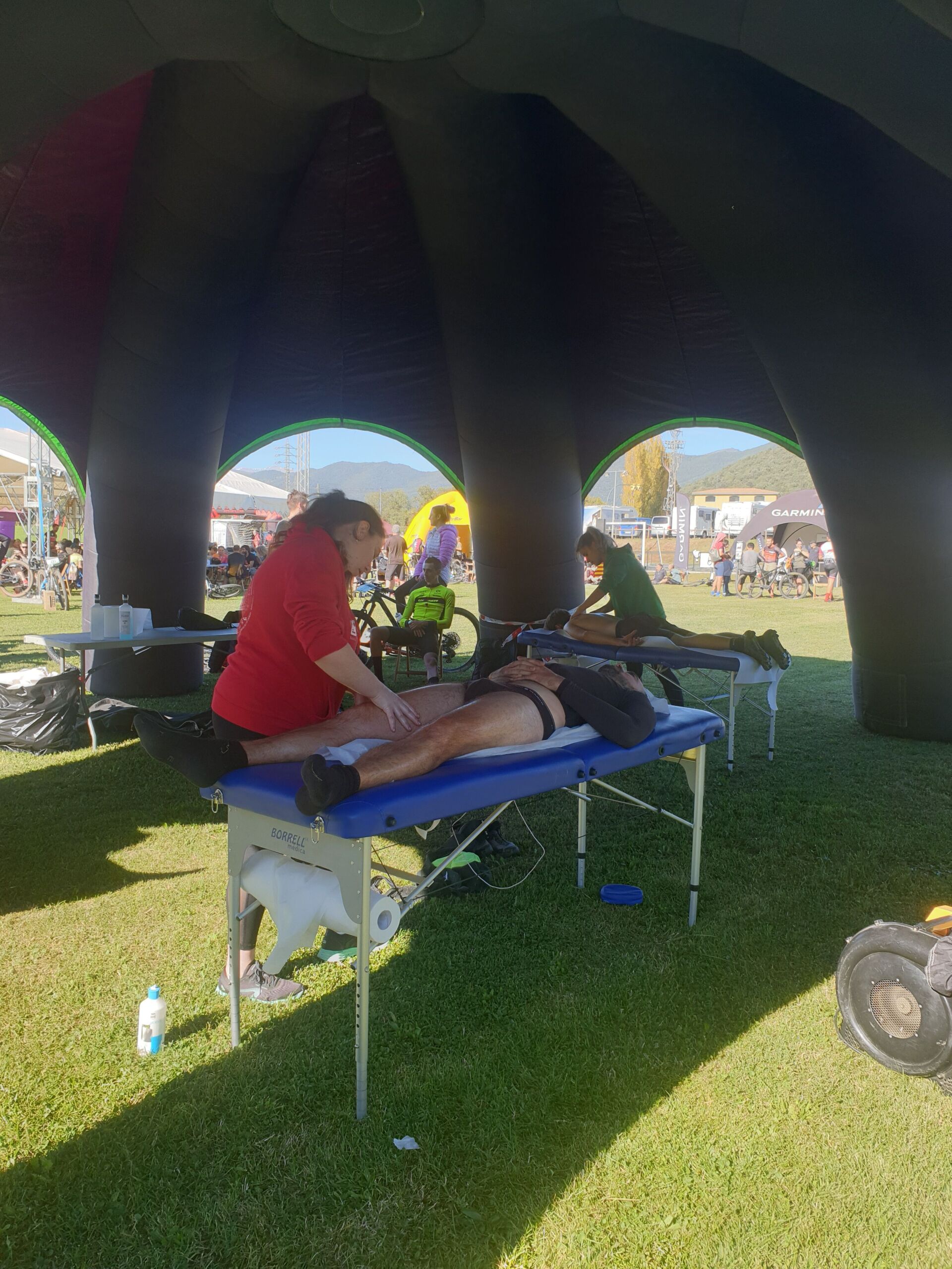 Sota la supervisió del fisioterapeuta d’EUSES Alumni Marc Julià, els estudiants del Grau en Fisioteràpia Lucas Sauneuf, Hippolyte Soucaze, Laura Duballut i Maelia Devassine van recuperar els participants d’una nova edició de la Romanic Bike Extrem, que es va celebrar aquest diumenge i va reunir uns 300 ciclistes. Els membres de l’EUSES es van ubicar en un punt de fisioteràpia situat a la zona d’arribada, al camp de futbol de l’Hostal Nou, i allà van realitzar massatges i estiraments als participants que van poder escollir entre dos recorreguts: una cursa llarga de 48 quilòmetres de recorregut amb un desnivell positiu de 2.000 metres i un de més curt de 34 quilòmetres amb un desnivell de 1.200 metres.