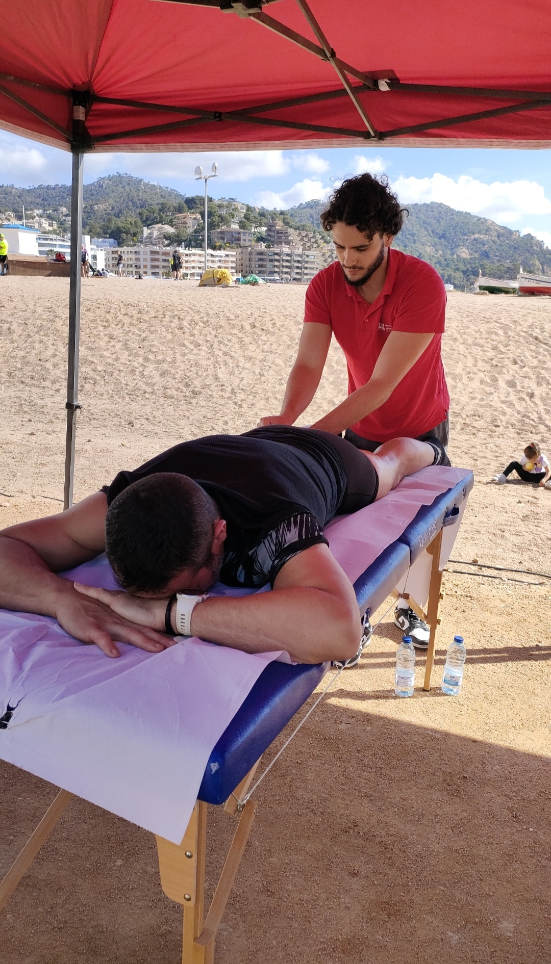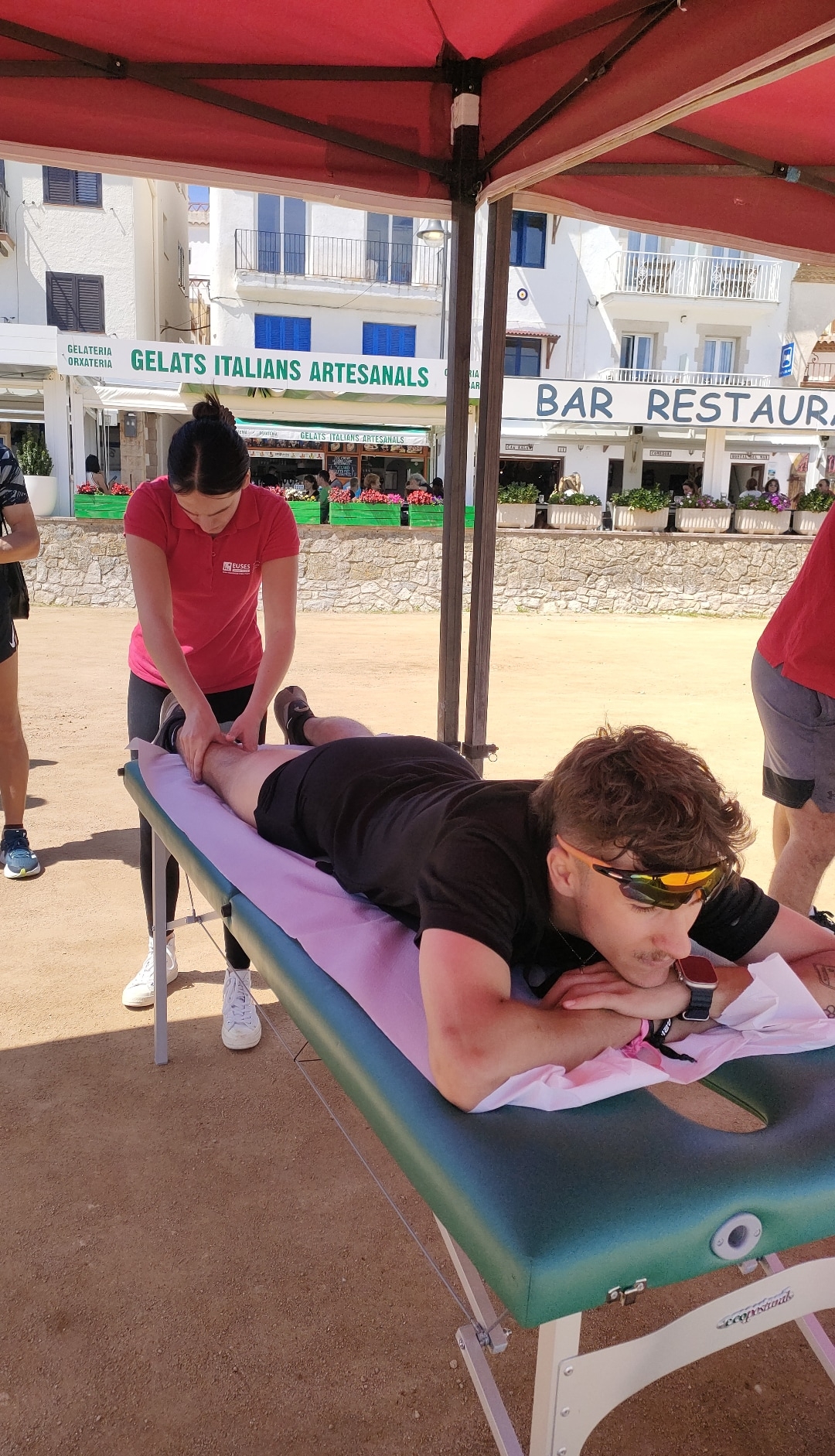 Sota la supervisió del fisioterapeuta d’EUSES Alumni Josep Fiego, els estudiants del Grau en Fisioteràpia Mathis Amrani i Martina Deutú es van encarregar de la recuperació muscular dels participants que van prendre part en una nova edició de la Run Festival de Tossa de Mar. Els esportistes van poder escollir entre cinc recorreguts, tres sobre asfalt (5, 10 i 21 quilòmetres) i dos trails (8 i 15 quilòmetres). Totes les proves van tenir com a punt de sortida i també d’arribada el Passeig del Mar, que és on es va habilitar una zona per a la recuperació i on els estudiants d’EUSES van realitzar massatges i estiraments als participants.