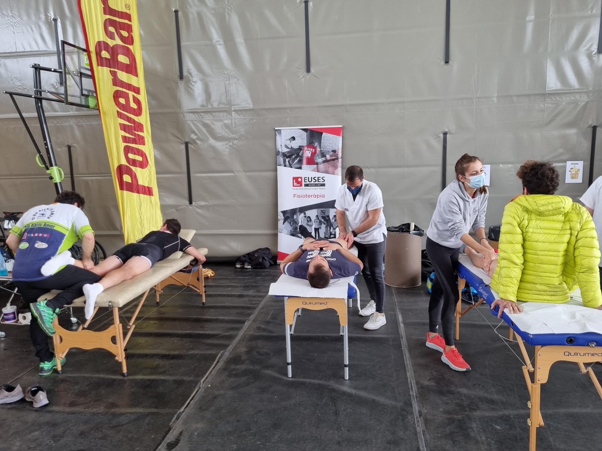 Seguint les directrius del fisioterapeuta d’EUSES Alumni David de la Barrera, EUSES va posar el seu gra de sorra en una nova edició de la marxa cicloturista Amer-Sant Martí Sacalm, celebrada aquest diumenge. Els estudiants del Grau en Fisioteràpia Marine Fuzier, Emerick Bajon i Alexane Courillaud van recuperar els ciclistes d’aquesta prova, organitzada pel, organitzda pel Club Atlètic Amer. Com és habitual, la funció dels estudiants d’EUSES va ser la recuperació muscular dels participants amb massatges i estiraments. La prova va tenir un recorregut curt de 131 quilòmetres amb 2.200 metres de desnivell (amb final a Amer) i un de més llarg de 138 quilòmetres i 2.800 metres de desnivell (amb arribada a Sant Martí Sacalm).