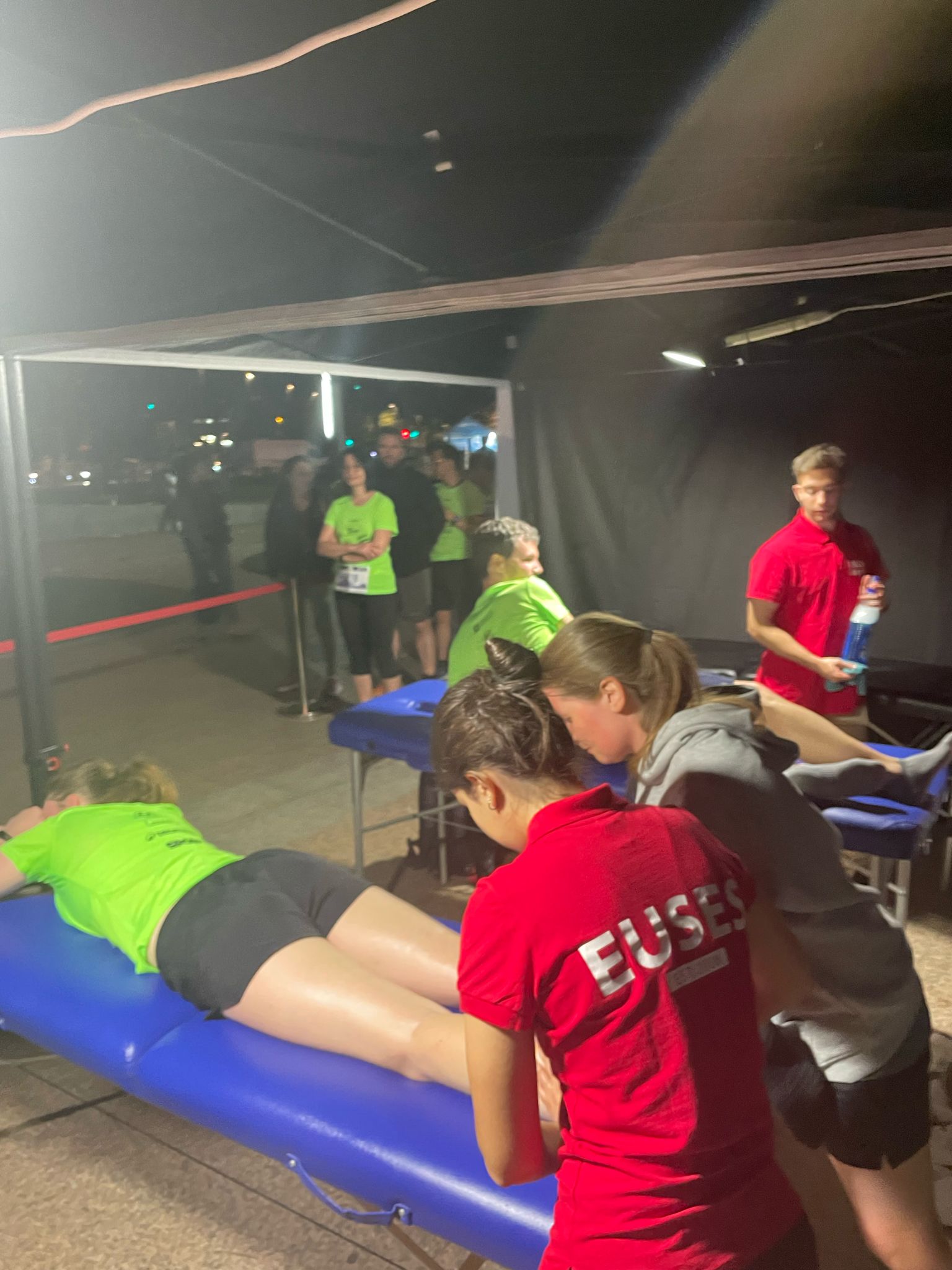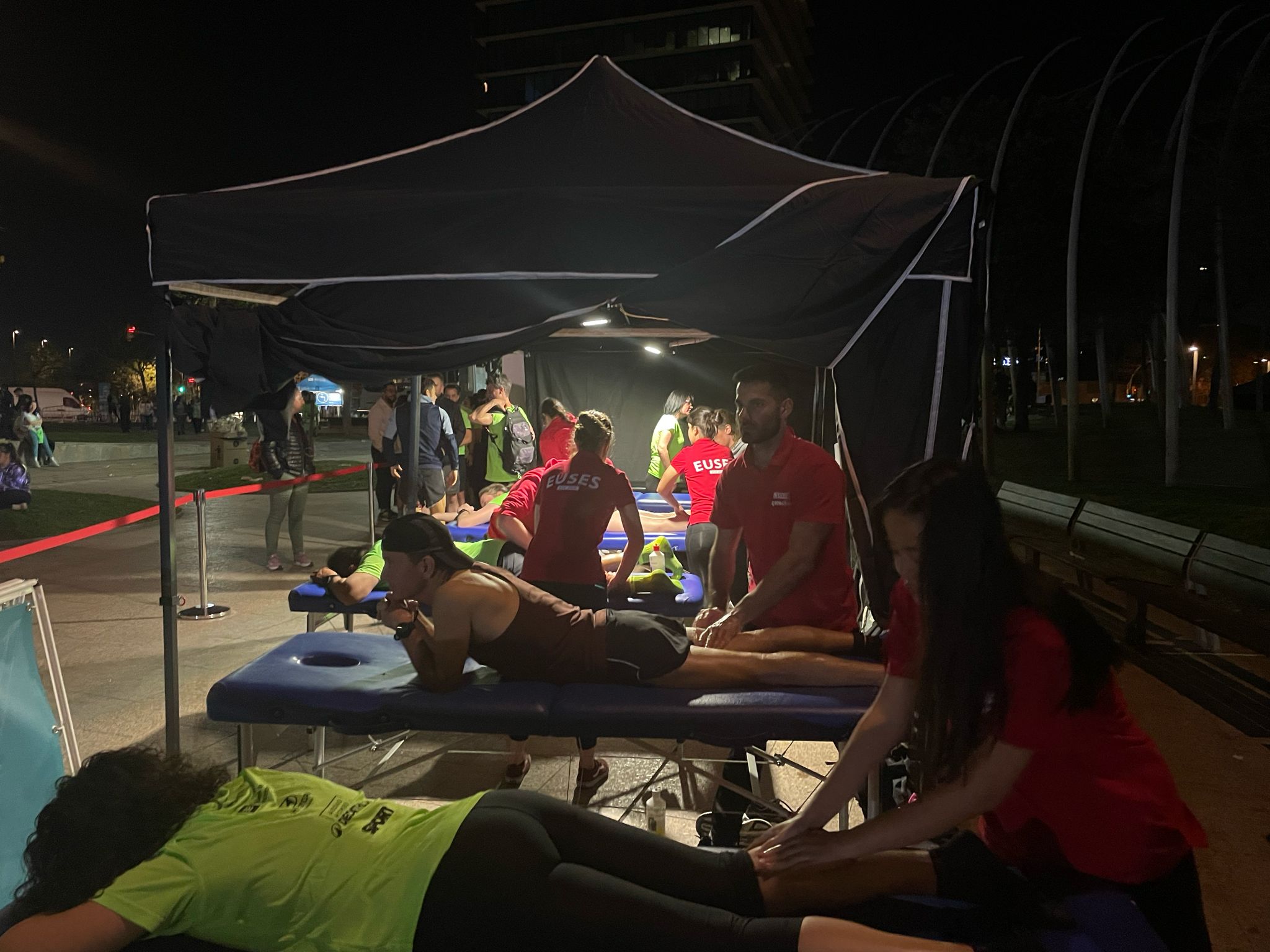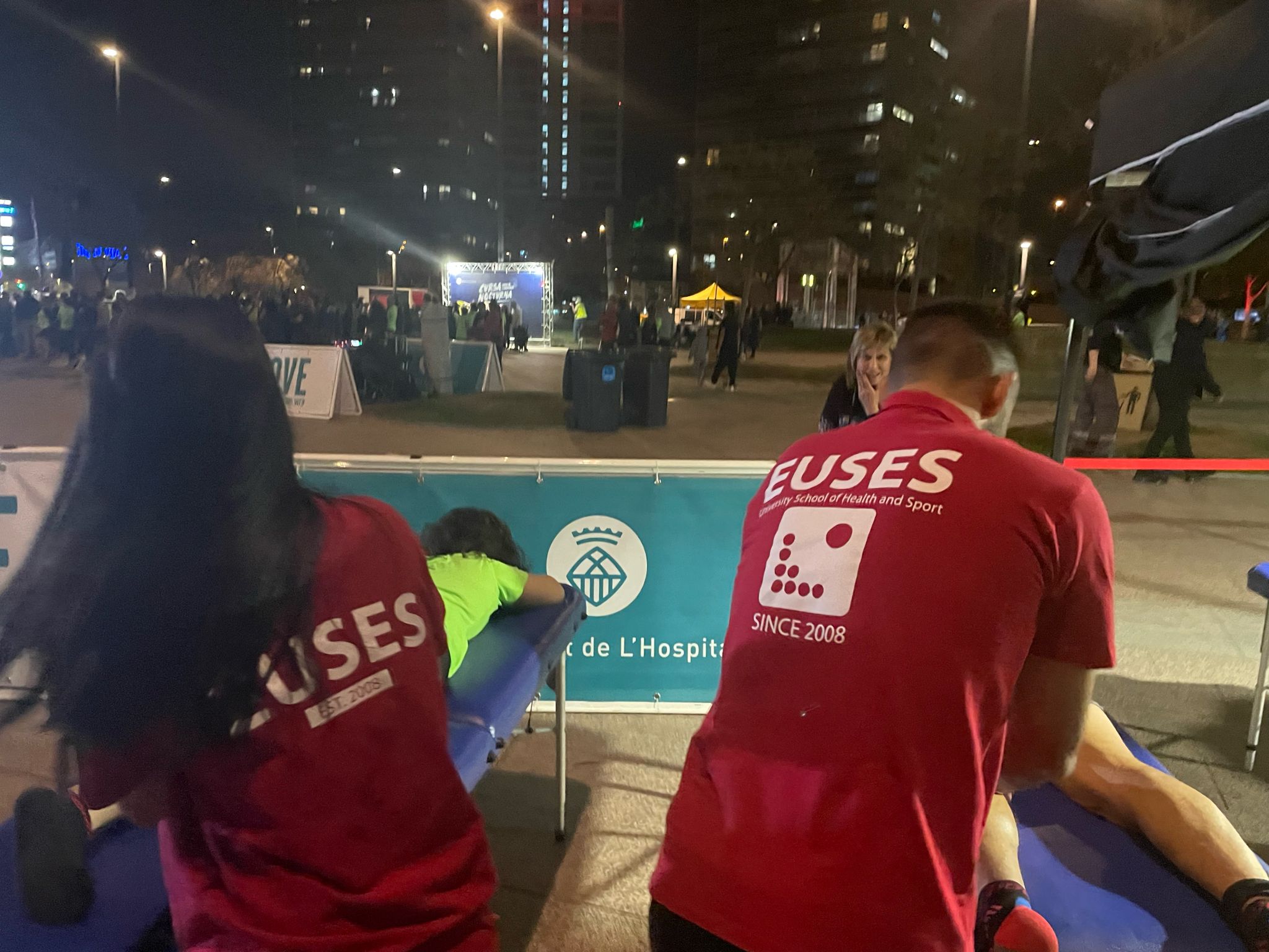 Sota la supervisió del fisioterapeuta Alejandro Revilla, EUSES va posar el seu gra de sorra en la Cursa Nocturna de l’Hospitalet, que enguany va arribar a la seva catorzena edició amb totes les inscripcions exhaurides. En una zona habilitada a prop de l’arribada, els representants de l’Escola Universitària de la Salut i l’Esport (els estudiants del Grau en Fisioteràpia Chloe Bastergue, Daniela Cerqueira, Amelie De Pommery, Helena Xihuan Morató, Patrick Bravo, Clémence Broustet i Judith Pérez) van realizar tècniques de recuperació muscular als esportistes que ho van desitjar. Els participants van poder triar entre un recorregut de 10 quilòmetres i un altre de cinc. L’organització també va preveure diferents curses infantils per als més menuts.