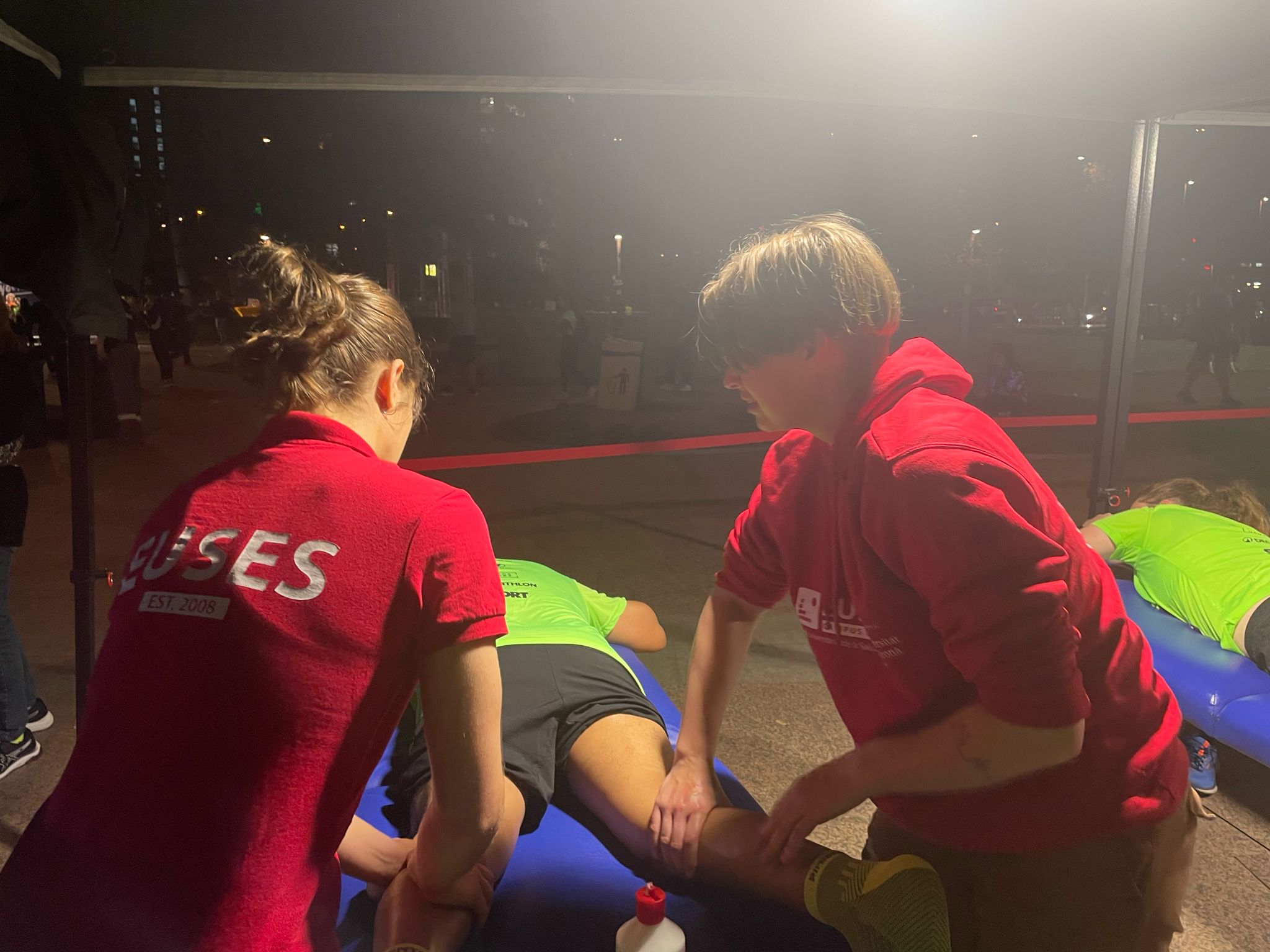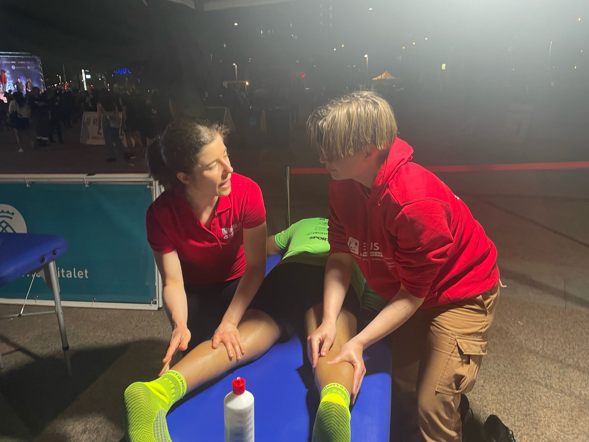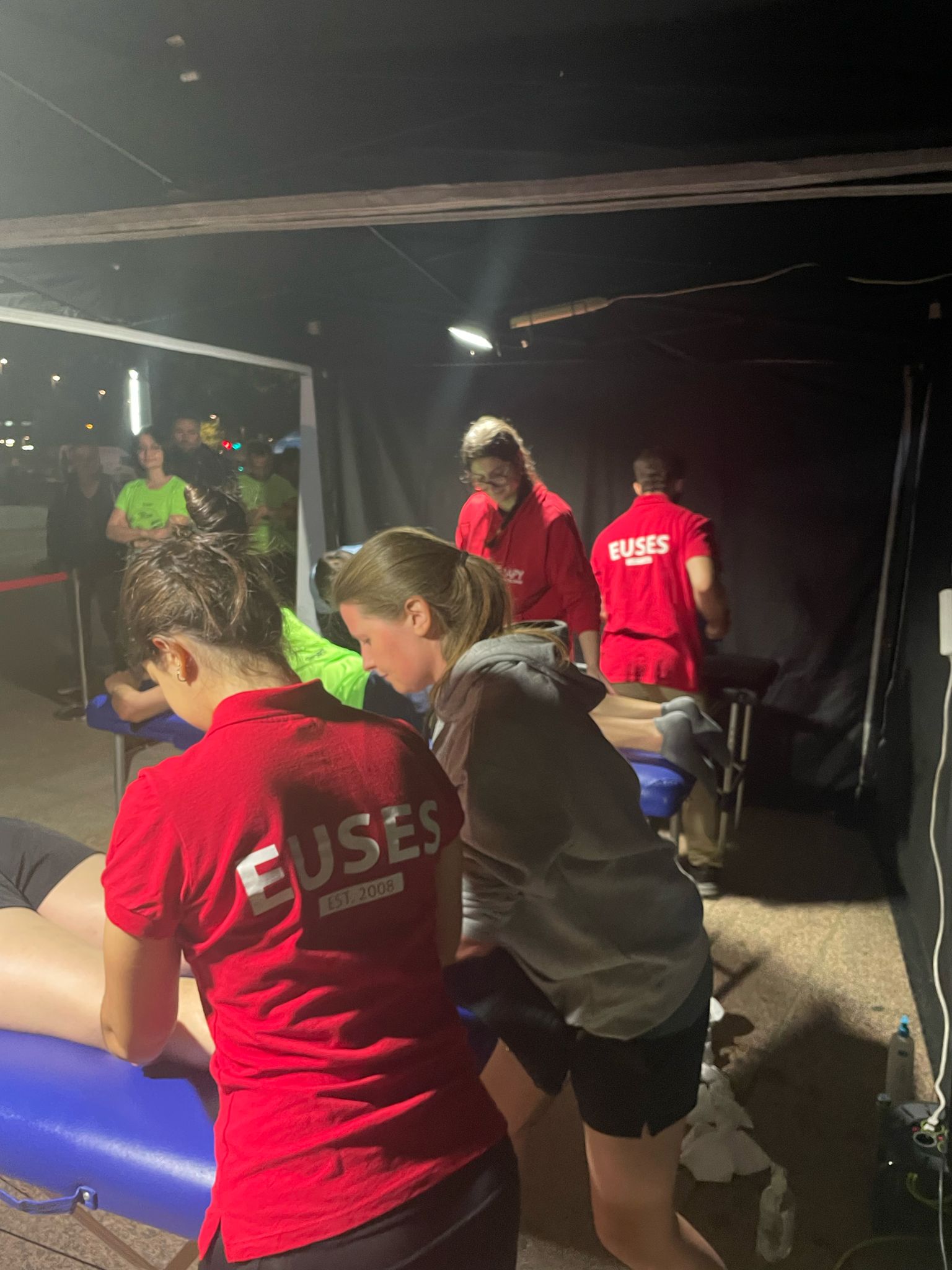 Sota la supervisió del fisioterapeuta Alejandro Revilla, EUSES va posar el seu gra de sorra en la Cursa Nocturna de l’Hospitalet, que enguany va arribar a la seva catorzena edició amb totes les inscripcions exhaurides. En una zona habilitada a prop de l’arribada, els representants de l’Escola Universitària de la Salut i l’Esport (els estudiants del Grau en Fisioteràpia Chloe Bastergue, Daniela Cerqueira, Amelie De Pommery, Helena Xihuan Morató, Patrick Bravo, Clémence Broustet i Judith Pérez) van realizar tècniques de recuperació muscular als esportistes que ho van desitjar. Els participants van poder triar entre un recorregut de 10 quilòmetres i un altre de cinc. L’organització també va preveure diferents curses infantils per als més menuts.