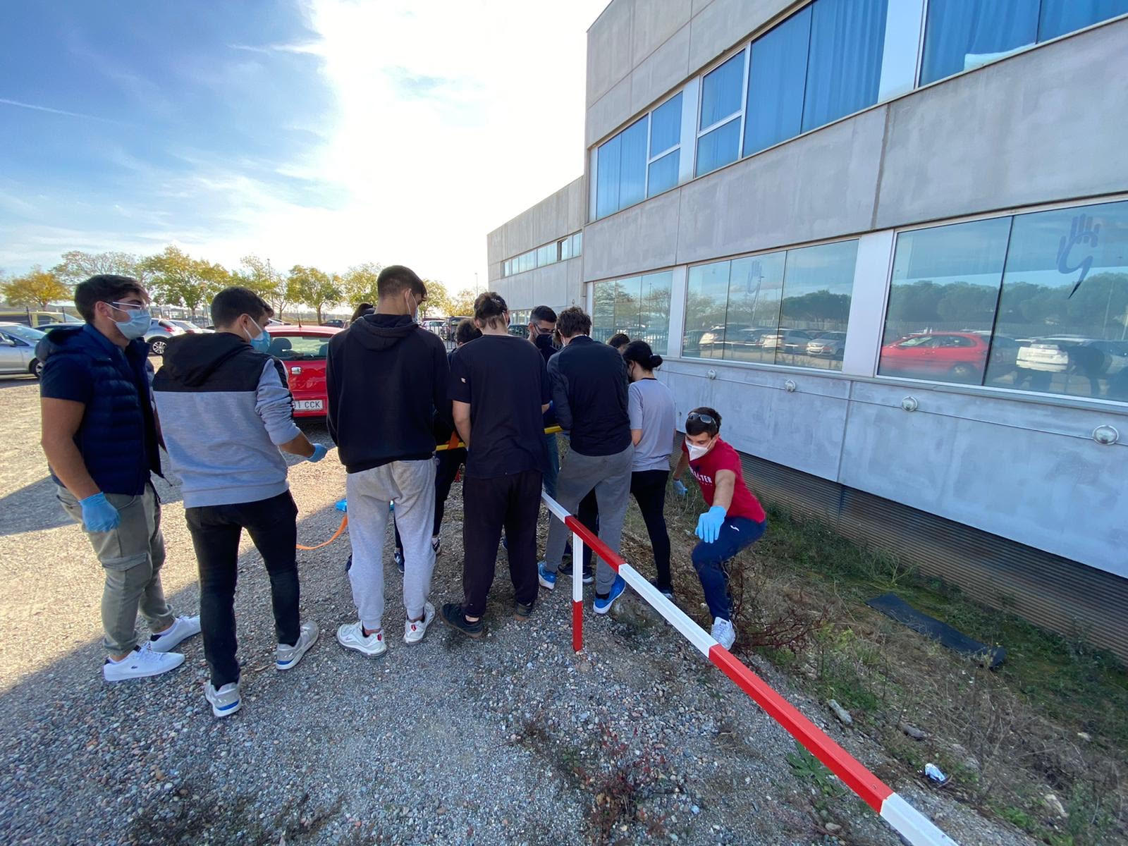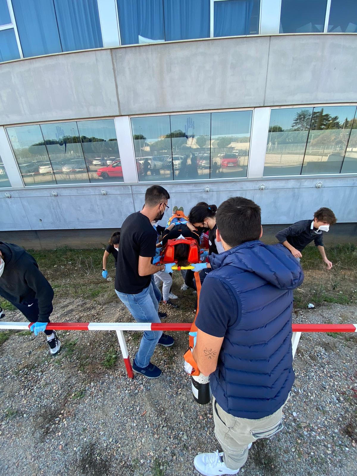 Els estudiants de 2n curs del Cicle Formatiu de Grau Mitjà de Tècnic en Emergències Sanitàries del Centre Garbí han realitzat aquest dimecres una classe pràctica a l’exterior del centre que ha consistit en mobilitzar un pacient amb lesió cervical en un terreny abrupte i una pendent molt pronunciada. La sessió s’han emmarcat dins l’assignatura d’Evacuació i Trasllat que imparteix el professor Eduard Torner, que ha explicat i pràcticat la tècnica que consisteix en passar el tauló espinal de mà en mà sense que els tècnics en emergències hagin de moure’s carregant pes i, d’aquesta manera, s’eviten relliscades i caigudes.