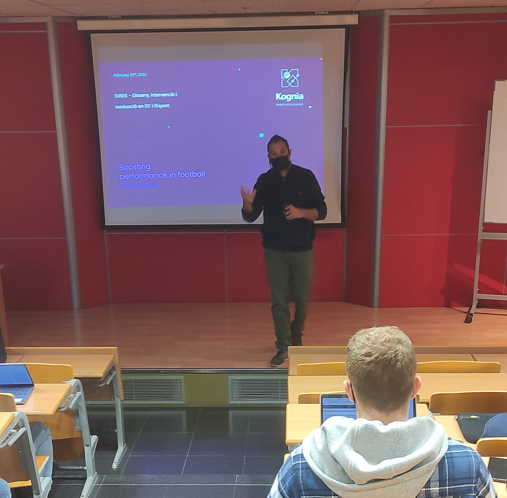 En el marc de l’assignatura de Disseny, intervenció i avaluació en l’Educació Física i l’Esport que imparteixen Adrià Martín i Clara Teixidor als alumnes de 2n curs del Grau en Ciències de l’Activitat Física i de l’Esport, es va presentar l’empresa Kognia Sports Intelligence, a càrrec de Maurici A. López-Felip, Chief Executive Officer i professor de futbol a 3r de CAFE.