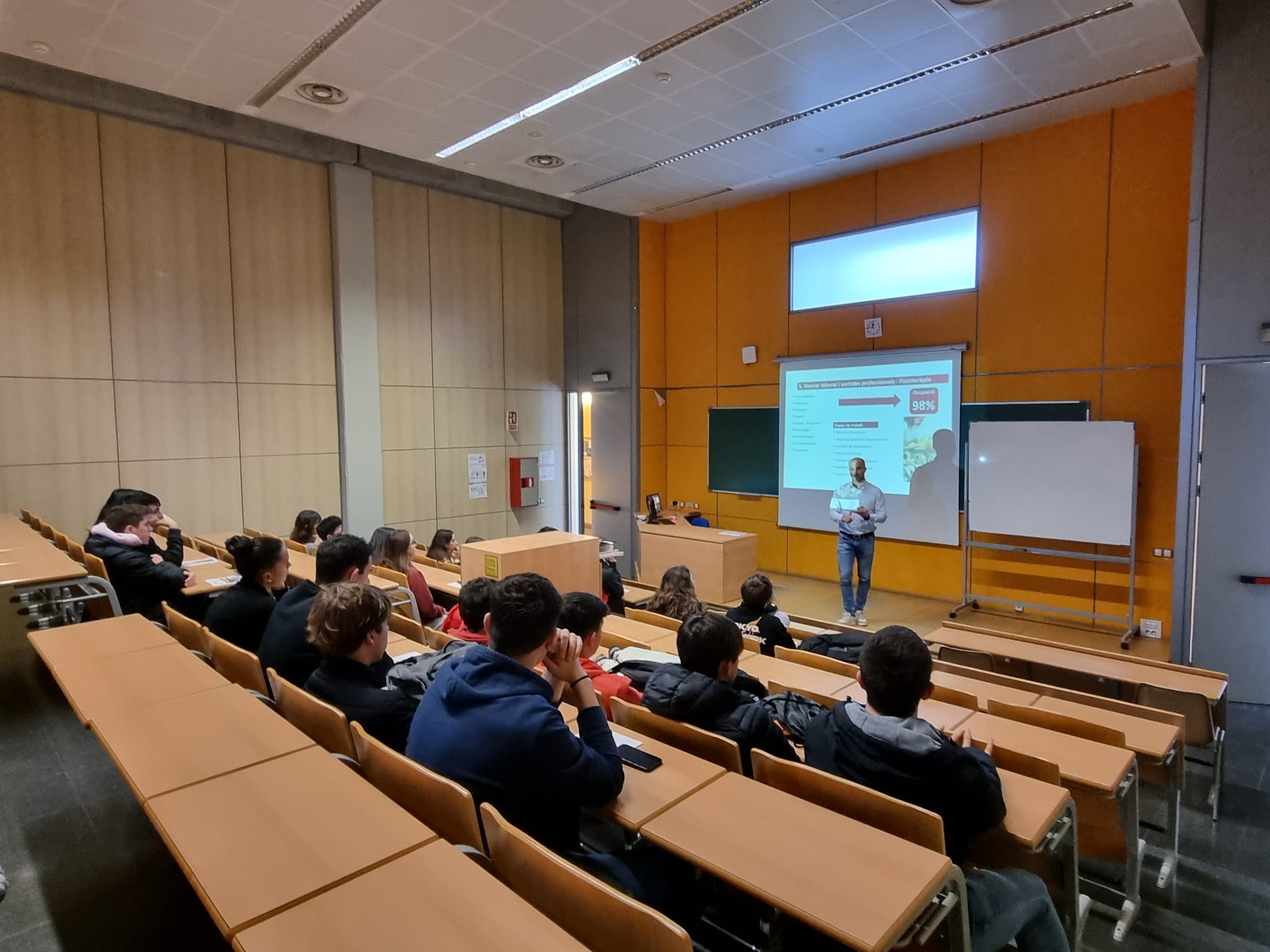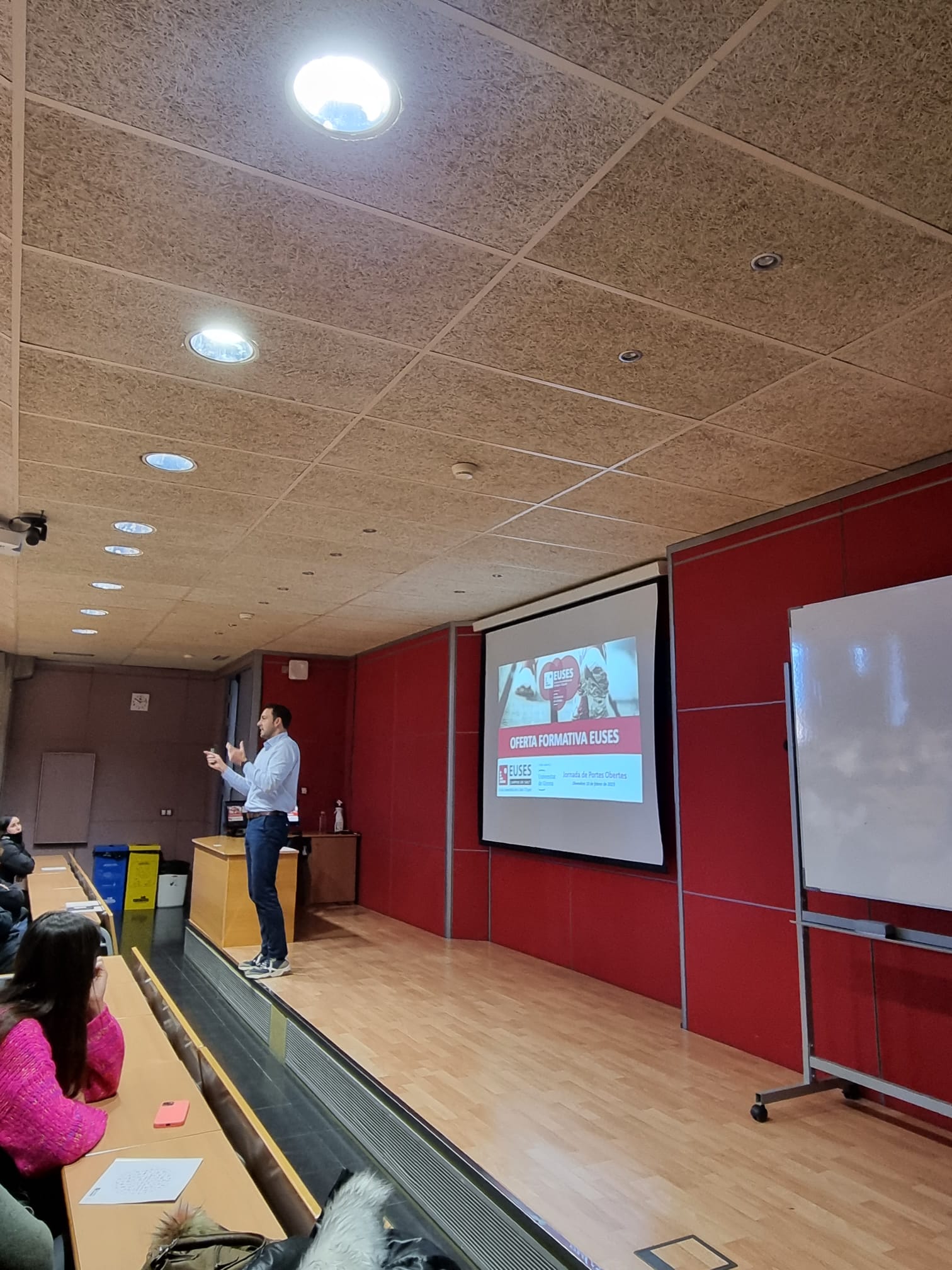 Les instal·lacions del Campus de Salt s’han obert aquest matí per acollir la jornada de portes obertes de la UdG, adreçada als estudiants de batxillerat i de cicles formatius que el curs vinent volen iniciar l’etapa universitària. L’Escola Universitària de la Salut i l’Esport ha presentat la seva oferta formativa dels Graus en Ciències de l’Activitat Física i de l’Esport, en Fisioteràpia i el Doble Grau (CAFE+Fisioteràpia). La jornada ha tingut dues sessions específiques per a cada grau (a les 10 i a les 11) i ha constat d’una sessió informativa en la qual s’han explicat tots els detalls dels graus (el pla d’estudis, les sortides laborals, els convenis de col·laboració que té signats el centre amb entitats i altres universitats, el procés de matriculació…) i una visita guiada per les instal·lacions. Per cobrir la benvinguda als estudiants així com totes les sessions (quatre en total), EUSES hi ha destinat membres de la direcció i coordinació acadèmica (Adrià Martín, Ernest Esteve, Jandro Guil, Quim Llorella, Estefania Plans i Raquel Valldosera) i personal d’administració i serveis (Teresa Fernàndez, Sarah Vicente, Albert Deulofeu i Pau Vila).