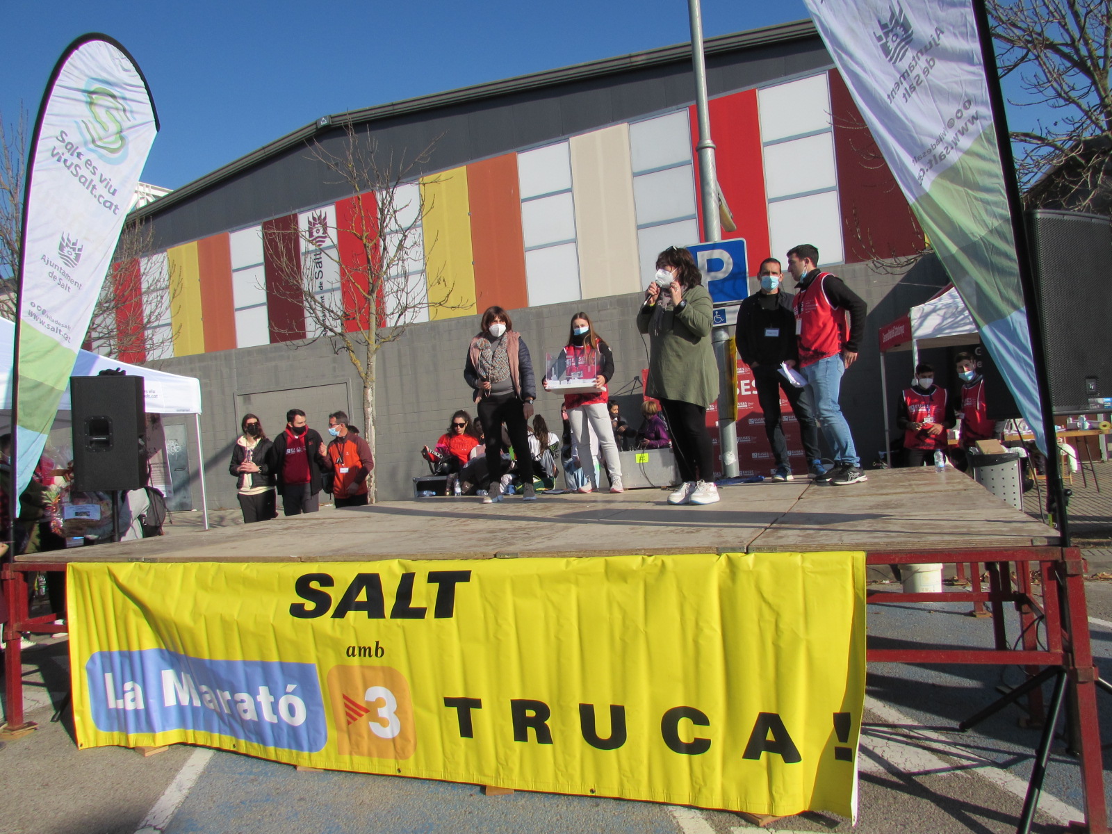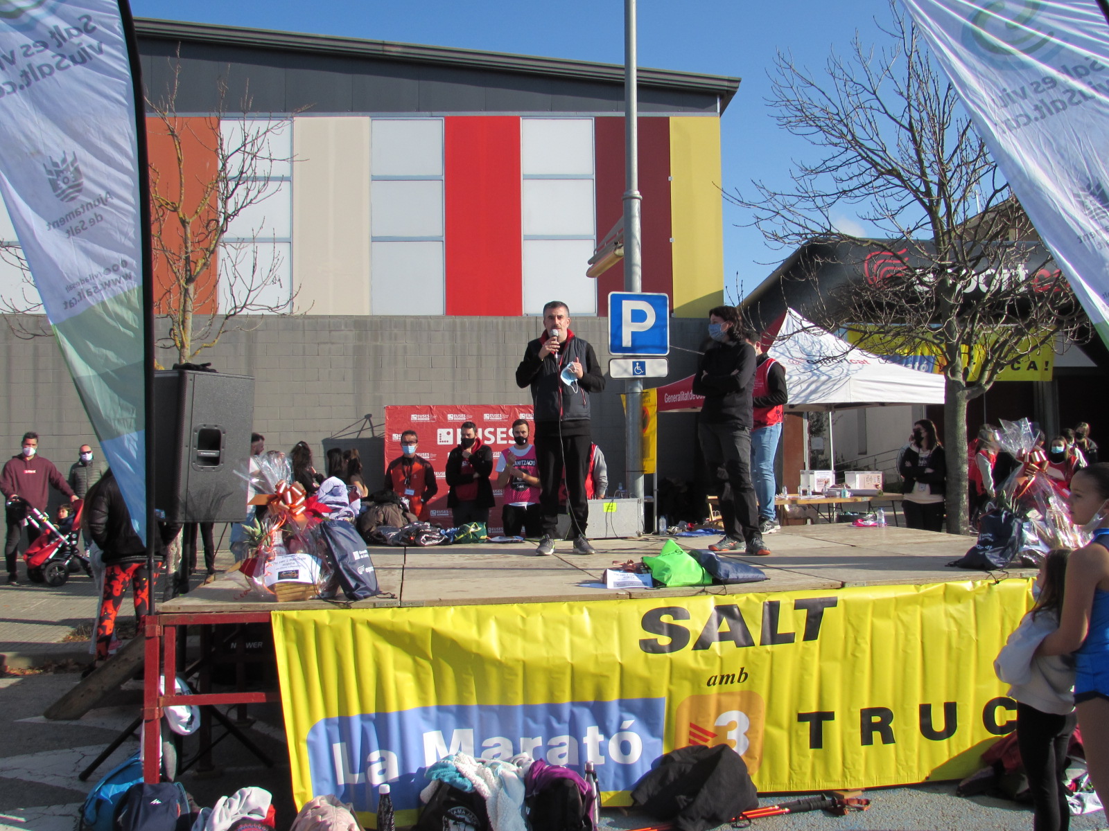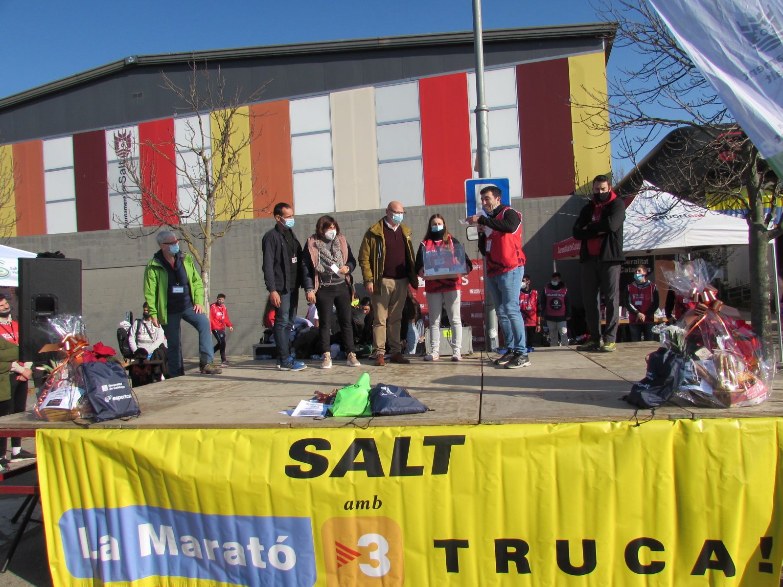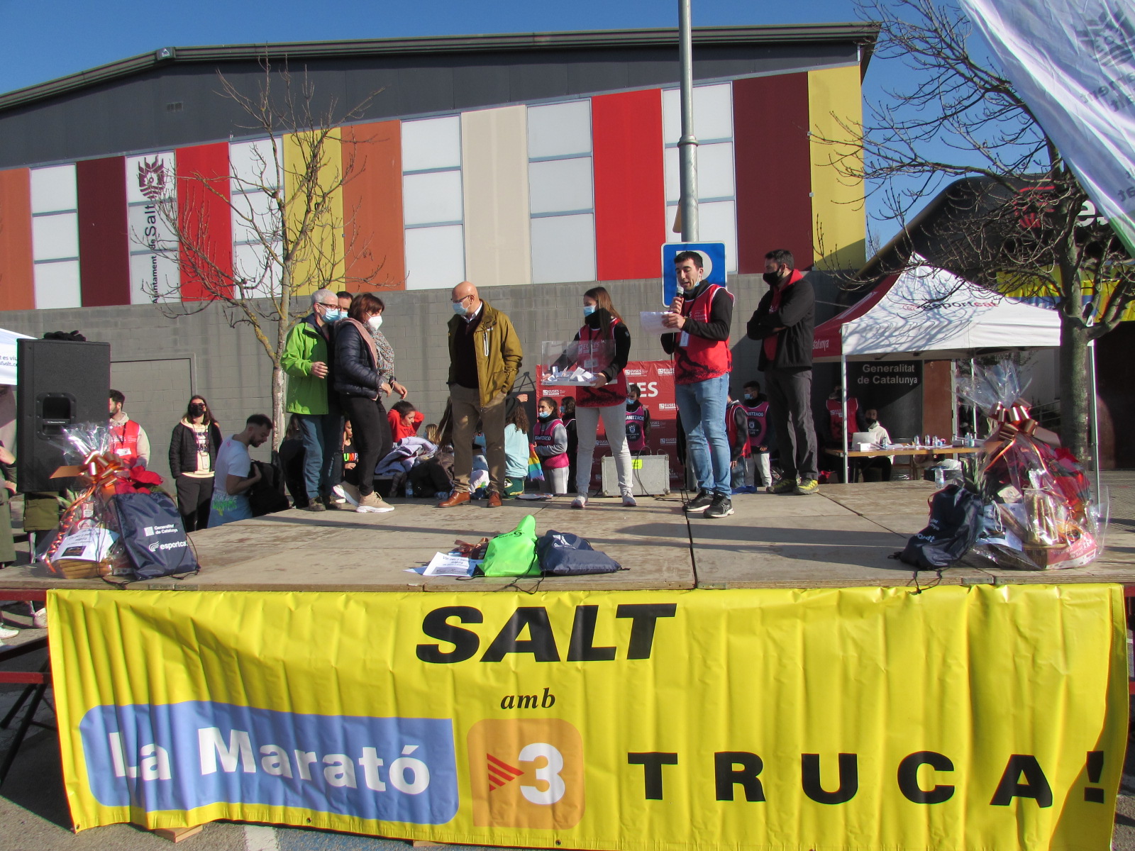En una matinal farcida d’activitats a la zona esportiva municipal El Pla, la iniciativa “Salt, amb la Marató” ha recollit aquest diumenge uns 4.000 euros (3.996,50) per a la Marató de TV3, que enguany complia la seva trentena edició i estava dedicada a la millora de la qualitat i de l’esperança de vida de les persones que pateixen problemes de salut mental i que ahir, en una jornada plena de solidaritat, va superar els 9 milions d’euros de recaptació.
