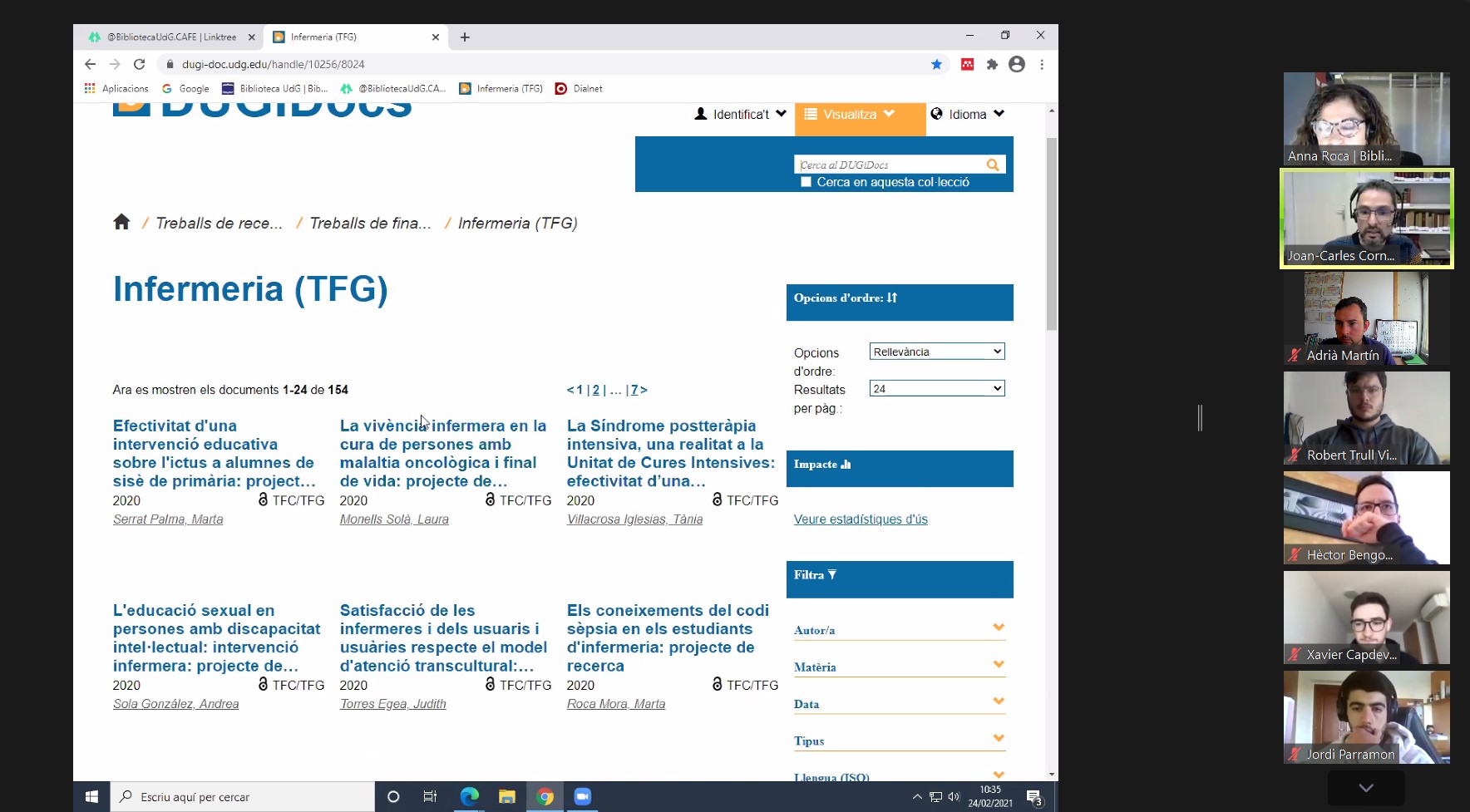 Seminari dels responsables de la biblioteca del Campus Centre de la UdG als alumnes de 4t de CAFE