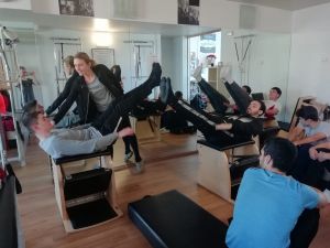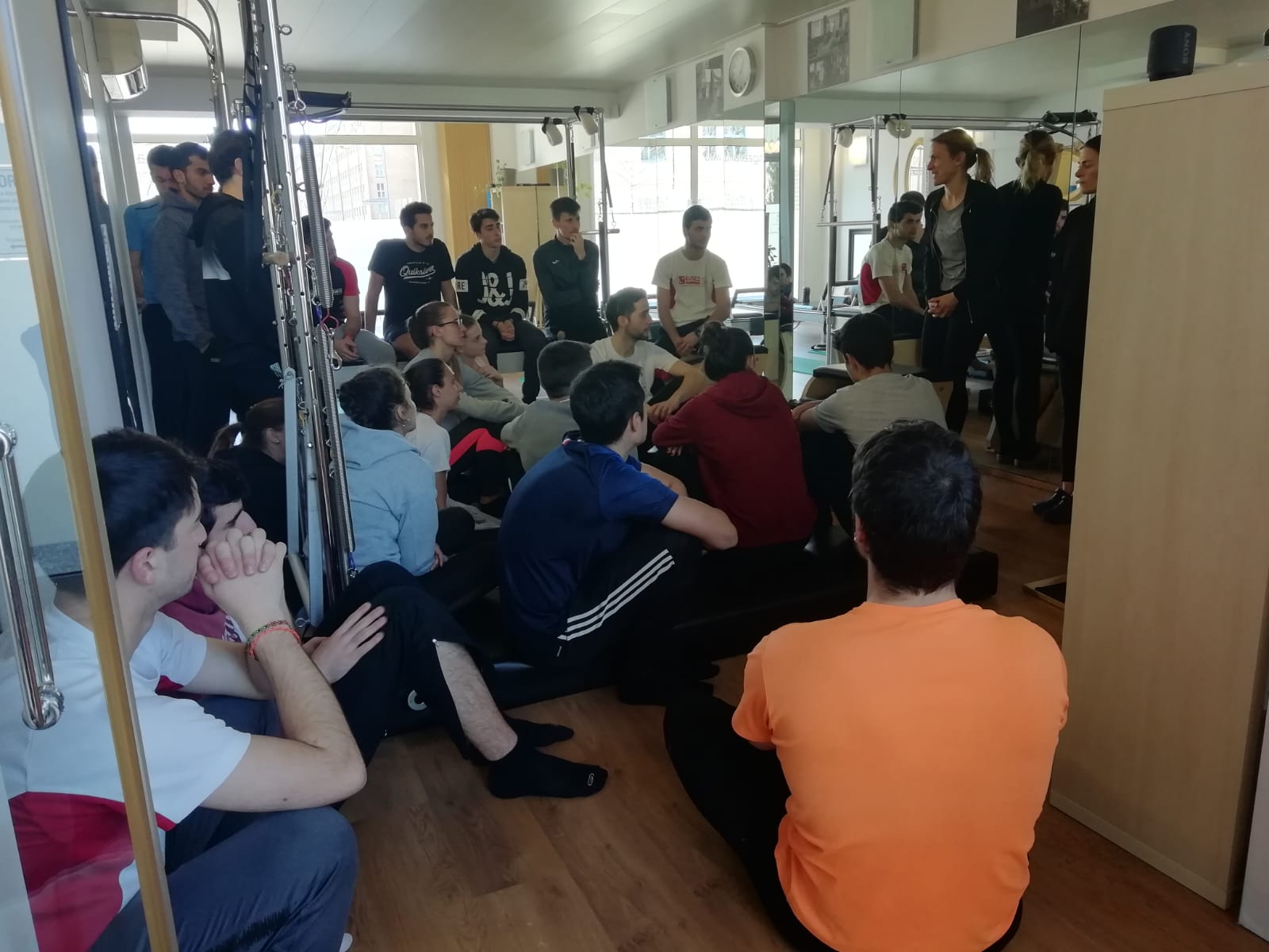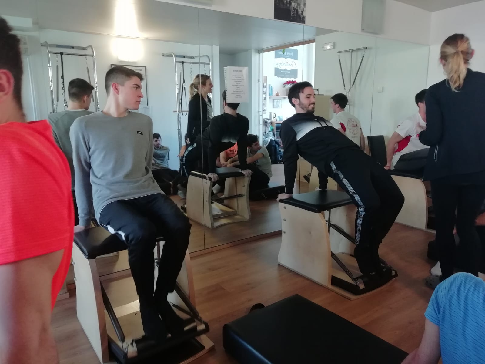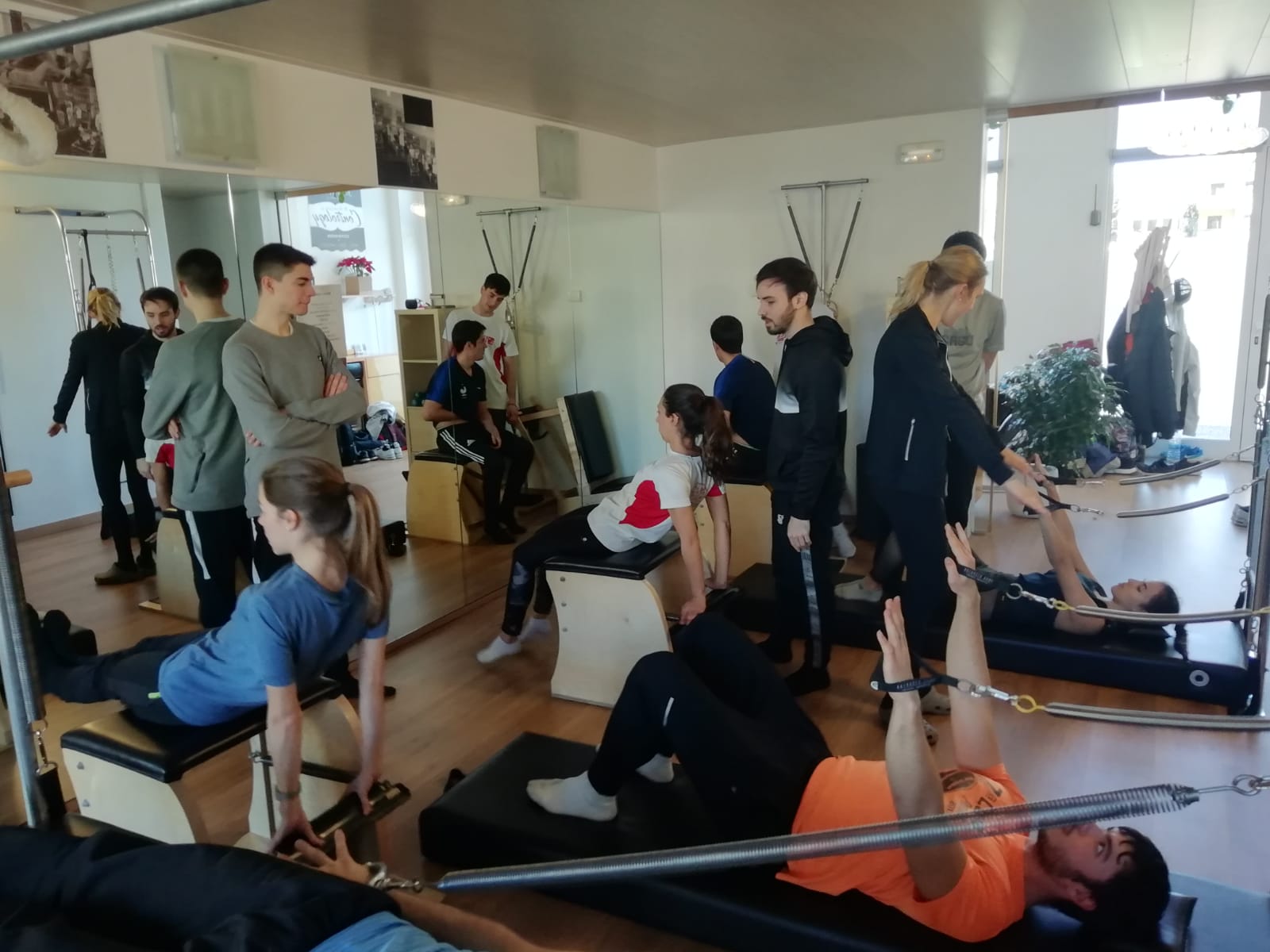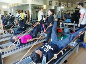 Els estudiants de 3r curs del Grau en Ciències de l’Activitat Física i de l’Esport han realitzat una sessió de pilates que ha estat emmarcada en l’assignatura d’Esports d’Equip 2-Noves Tendències de l’Entrenament que imparteix la professora Esther Hernàndez. La classe pràctica s’ha realitzat a l’estudi Pilates Girona de Martina Blume, on els alumnes han pogut provar en primera persona les màquines i exercicis originals de Joseph Pilates,  creador del mètode que porta el seu nom.