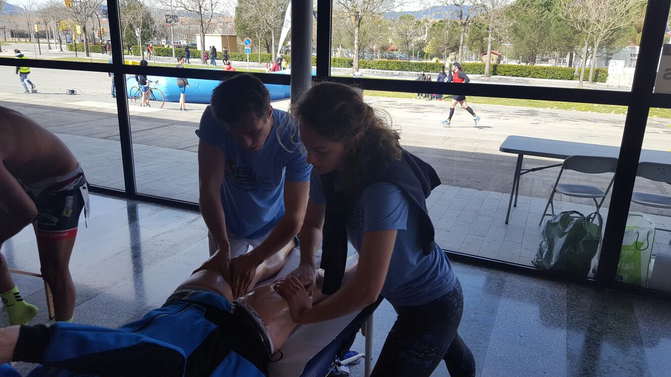 L’Escola Universitària de la Salut i l’Esport va estar present en una nova edició de la Duatló de Girona, una prova que va constar de 5 quilòmetres de cursa a peu, 24 quilòmetres en bicicleta i 2,5 quilòmetres de cursa a peu i que va aplegar més de 250 atletes. Sota la supervisió del fisioterapeuta d’EUSES Alumni David de la Barrera, els alumnes que al final de la prova van realitzar massatges i estiraments als esportistes per facilitar la seva recuperació muscular van ser: Lucile Dupin, Patrícia Prats, Aude Marain, Lluís Rigall, Marc Roura, Clement Meunier, Julien Granier, Eduard Rodríguez, Anastasiya Danylyshin, Eva Arnaez i Thomas Bedin. L’olotí Nan Oliveras ( TGBINN ) i Montserrat Mas ( CERRR Igualada ) van ser els guanyadors.