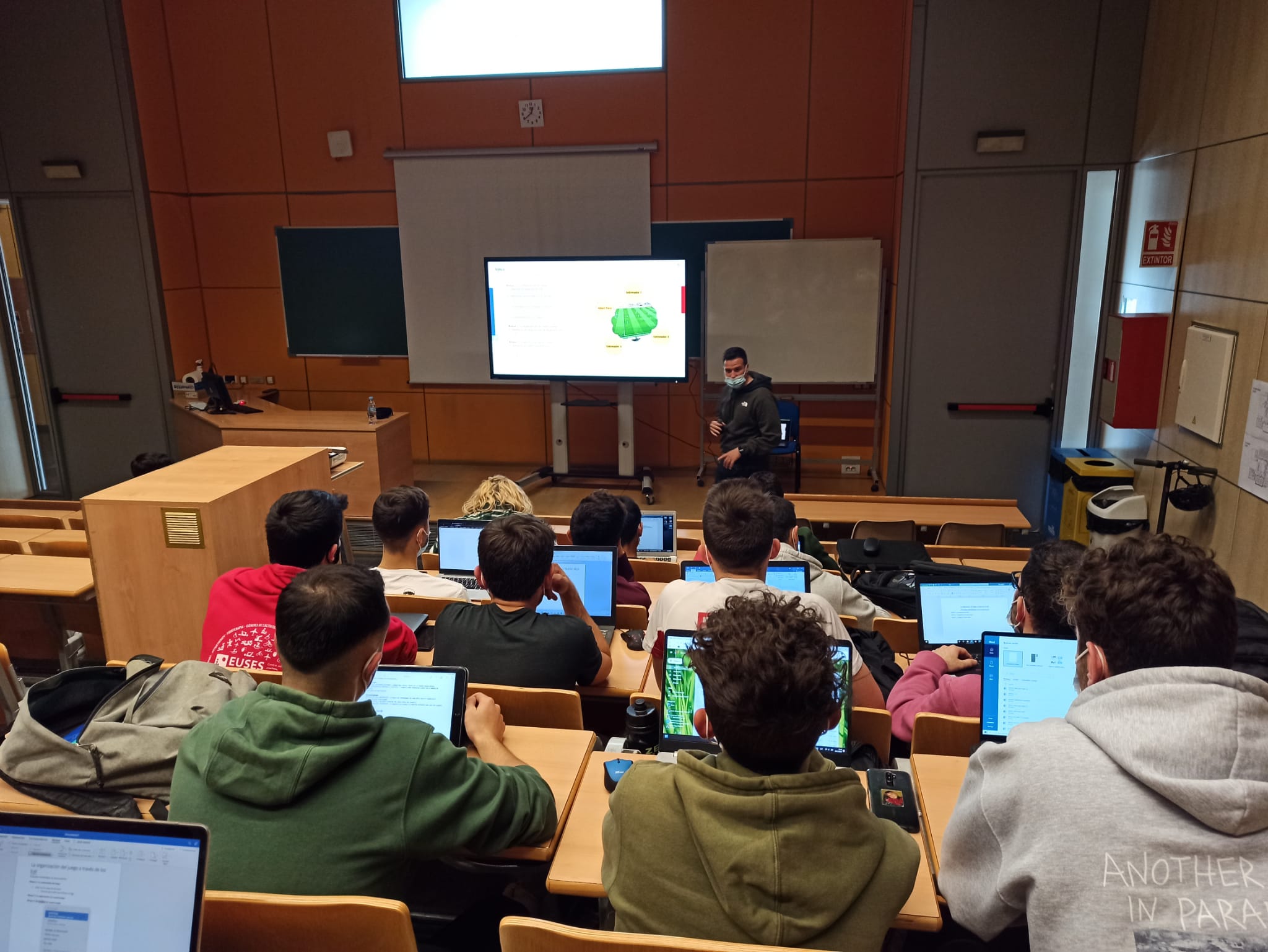 Durant la sessió, Albert Peris ha explicat les seves funcions en el filial blaugrana, que són bàsicament la gestió de la preparació física i la metodologia que utilitzen per fer entendre els jugadors la idea de joc que es vol implementar i que està en clara consonància amb la del primer equip. També ha exposat com fa de pont entre les diferents línies d’scouting per filtrar la informació que ha d’arribar al primer entrenador, Sergi Barjuán. La xerrada ha estat molt interessant perquè en el tram final de la mateixa hi ha hagut també molta participació dels alumnes, ja sigui perquè han realitzat moltes preguntes com perquè el propi Albert Peris els ha plantejat algunes situacions que els estudiants han hagut de resoldre.